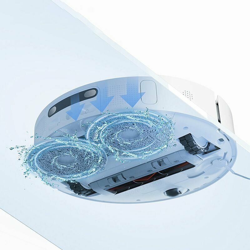 Автоматическая замена воды У вас больше не будет необходимости в ручной замене воды. Пылесос самостоятельно очищает резервуар для сточных вод после очистки швабры и заливает новую воду в базу для последующих уборок. *Функция доступна при покупке системы для подключения к водопроводу. База для самоочистки Помимо функции зарядки пылесоса станция самоочистки поддерживает автоматический сбор пыли, чистку швабры и термическую сушку. Сильный поток воды направляется в лоток для очистки и пропитывает швабру. Одновременно система очищения начинает вращаться с высокой скоростью, соскабливая грязь. Для более тщательного очищения вы можете налить чистящее средство в специальный контейнер, и он будет автоматически добавляться в нужном количестве перед каждой очисткой швабры. При сушке швабра автоматически поднимается и сушится горячим воздухом в течение 2 часов. Это предотвращает появление влаги и запаха, и швабра всегда остается свежей. Пылесборник Встроенный пылесборник объемом 2,5 л позволяет использовать пылесос до 1 месяца без замены мешка для сбора пыли. Благодаря двойным воздуховодам очистка робота-пылесоса выполняется всего да 10 секунд! Влажная и сухая уборка Пылесос поддерживает постоянную влажность швабры на протяжении всей уборки. Швабра вращается под давлением, имитируя ручную уборку и позволяя избавляться даже от засохших пятен. Ультразвуковой датчик пылесоса способен распознавать тип поверхности. При обнаружении ковра, швабра автоматически поднимается, чтобы не допускать намокания ворса. Интеллектуальная система Подключение к приложению MiHome позволяет связать пылесос с другими устройствами умного дома и настроить индивидуальные сценарии работы.