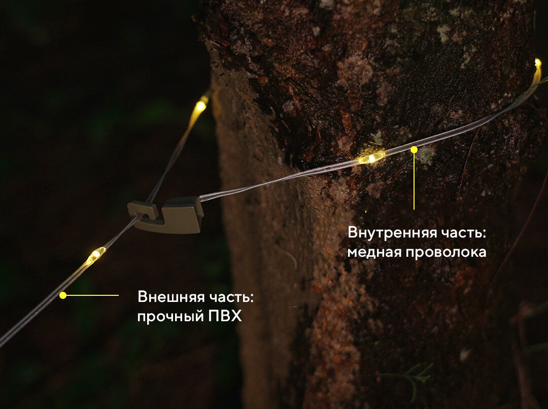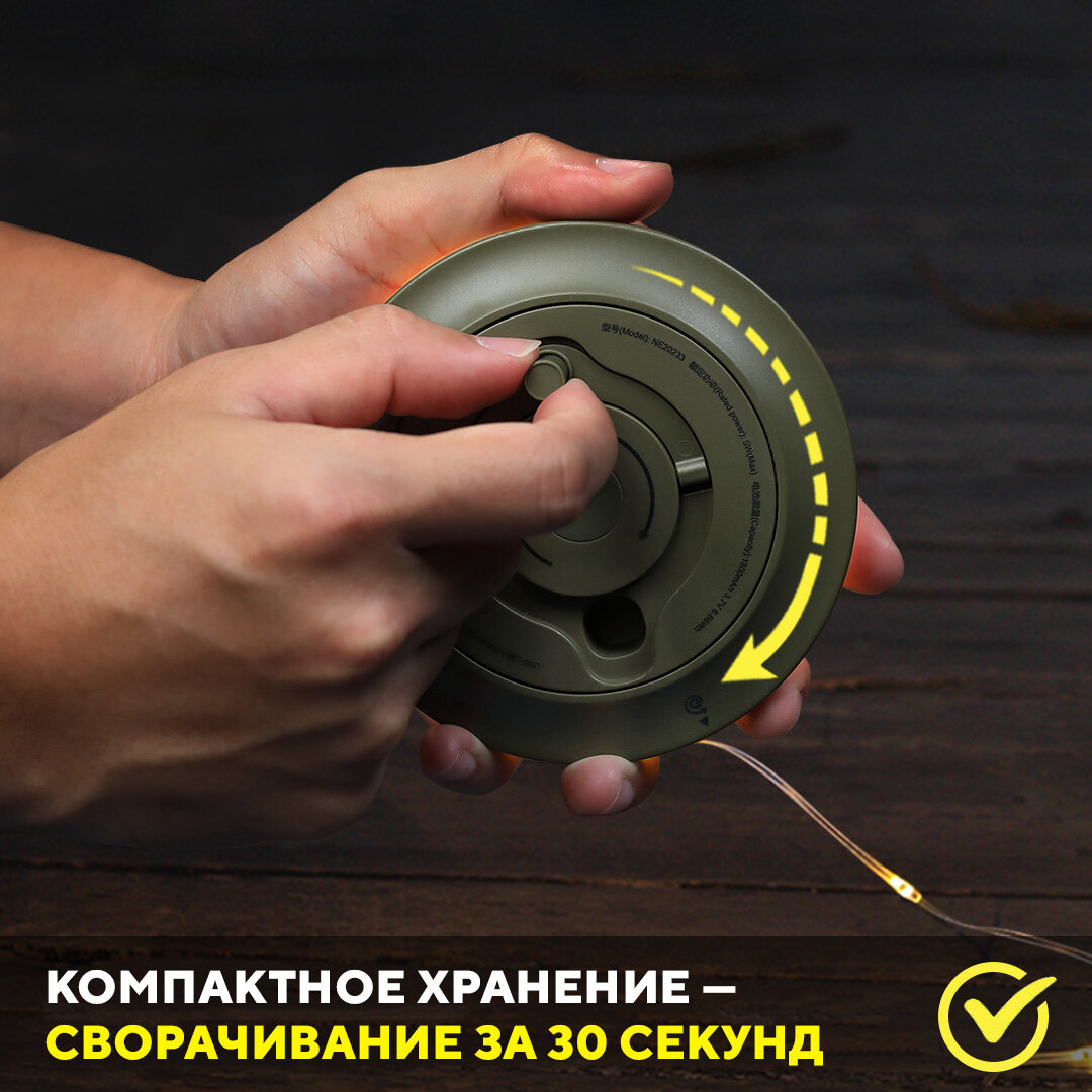 NexTool Milky Way умело сочетает в себе гирлянду и уличный фонарь, что позволяет его использовать и в праздники, и в обычной жизни. Такой фонарь отлично подойдет для кемпинга, дачного домика, украшения помещения или уличной территории ко дню рождения, а также в качестве ночника в детскую комнату. Корпус устройства имеет защиту [IPX4] , что позволяет использовать его на открытом воздухе в любую погоду. Фонарь оснащен независимым светодиодным модулем, который излучает свет с яркостью 200 люмен и цветовой температурой в 4000К, а запас автономной работы составляет 3 часа.Мягкая светодиодная 10-метровая лента-гирлянда излучает теплый свет в диапазоне 360° и имеет яркость 100 люмен, что позволяет ей проработать до 7,5 часов. Она не деформируется при сгибании или складывании. Благодаря удобной конструкции для хранения гирлянды ее можно легко свернуть. С помощью специального рычажка на корпусе фонаря наматывание светодиодной ленты займет всего лишь 30 секунд.Устройство оснащено 5 режимами: светодиодная лента в режиме постоянного освещения, режимах «светлячка» и затухания, режим фонарь + гирлянда, а также обычное использование фонаря в качестве походной лампы.Скрытый крючок в конструкции лампы позволяет подвесить ее на дерево, веревку или тент. Большой аккумулятор емкостью 1800 мАч устраняет проблему частой замены батареек. Универсальный интерфейс [Type-C] дает возможность подзарядить аккумулятор от внешнего блока питания в любом удобном месте. Комплексная система защиты от перезарядки и перегрузки по току делает использование фонаря еще более безопасным и простым. Осветите свои приключения и воспользуйтесь безграничными возможностями, которые предлагает кемпинговая лампа NexTool Milky Way.Особенности:- Индикатор уровня заряда;- Крючок для подвеса;- Зажим для ленты;- Водонепроницаемость;- Матовый корпус из [ABS-пластик, ABS-пластика] .