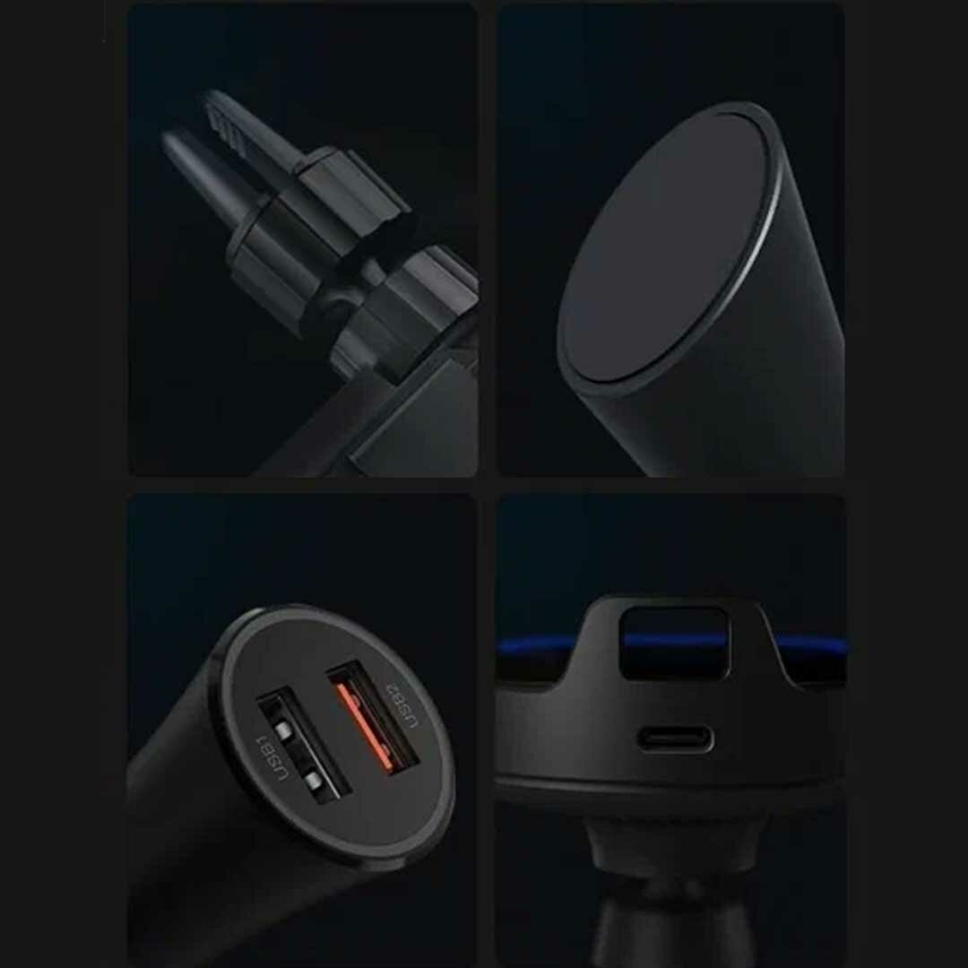 Держатель с беспроводной зарядкой Xiaomi Wireless Car Charger 30W (W03ZM) — новая версия популярной беспроводной зарядки Xiaomi с мощностью 30 Вт. ИК-датчик приближения смартфона с автоматическим открытием зажима, эффективное рассеивание тепла и быстрая зарядка. Подходит для большинства представленных на рынке смартфонов с поддержкой беспроводной зарядки. Отверстие в нижней части держателя и дополнительный разъем на блоке питания позволяет использовать проводную зарядку.