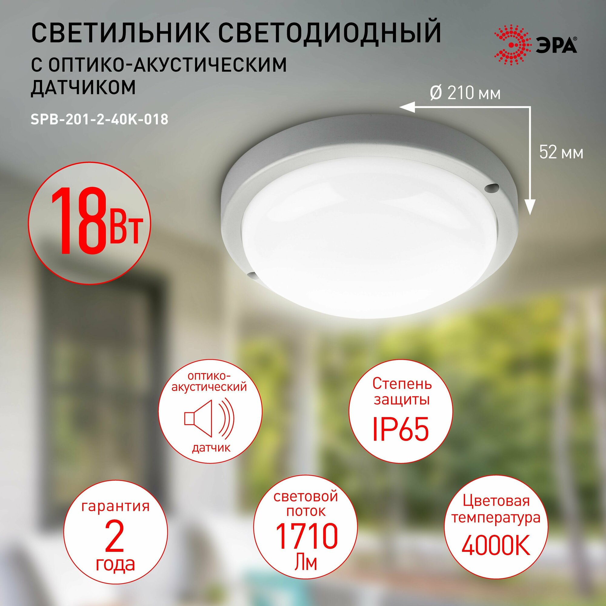 Светильник ЖКХ светодиодный с оптико-акустическим датчиком движения Эра SPB-201-2-40K-018 (Б0054581)
