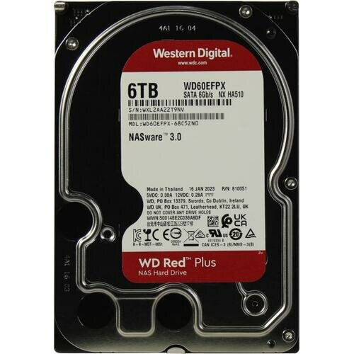 Жесткий диск Western Digital Red Plus WD60EFPX 6TB 3.5" 5400 RPM 128MB SATA-III NAS Edition