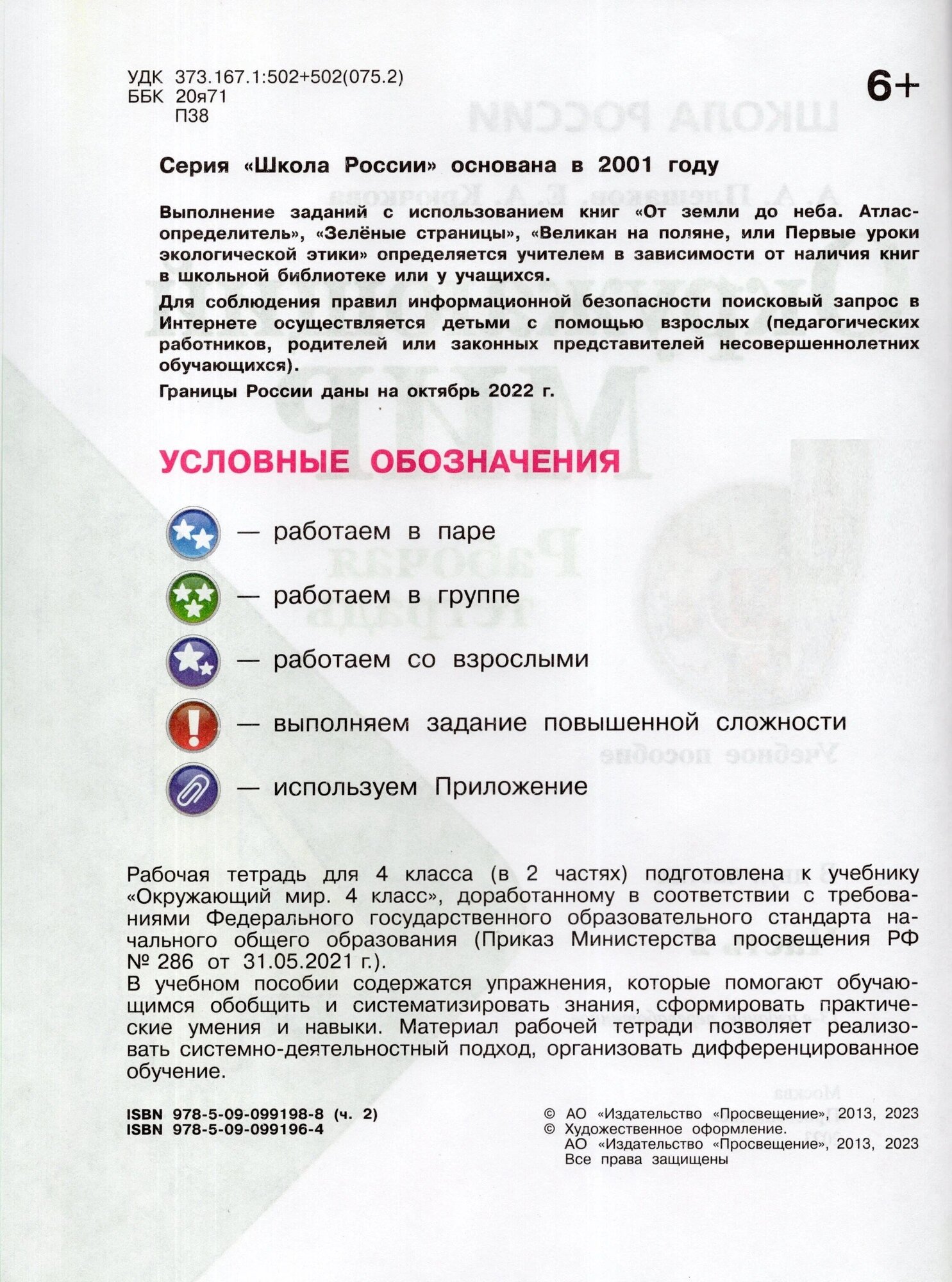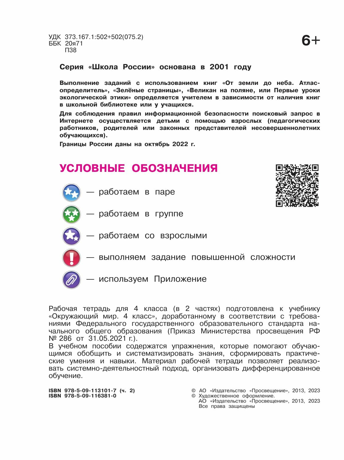 Рабочая тетрадь для 4 класса (в 2 частях) подготовлена к учебнику "Окружающий мир. 4 класс", доработанному в соответствии с требованиями Федерального государственного образовательного стандарта начального общего образования (Приказ Министерства просвещения РФ № 286 от 31.05.2021 г.).
