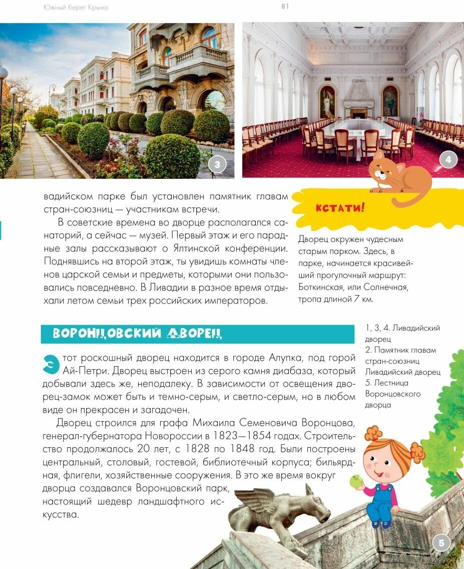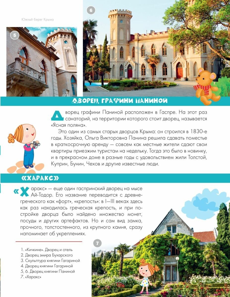 Уже ездили с таким путеводителем по Москве и, увидев издание про Крым, решили слетать и туда с этой книгой. Ребёнку семь, он очень разговорчивый, поэтому быть нашим экскурсоводом ему очень нравится, к тому же так он узнаёт много нового, учится сам ориентироваться. Иногда мне кажется, что после таких путешествий, он способен найти всё что угодно по обычной карте. В книге описаны главные достопримечательности, качественные фото и рисунки, также отобрана самая интересная информация, если хотите необычным образом обойти Крым, узнать много нового, так чтобы и ребёнку было интересно, очень советую приобрести в домашнюю библиотеку.