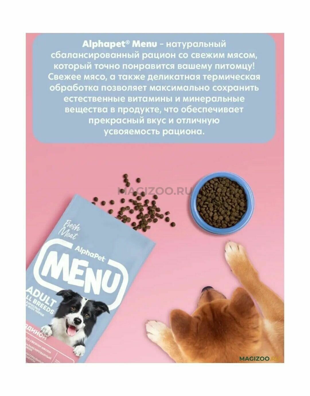 Сухой корм для собак AlphaPet Menu с говядиной 2кг Научно-Производственный Центр Кормовых Технологий