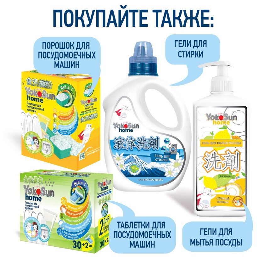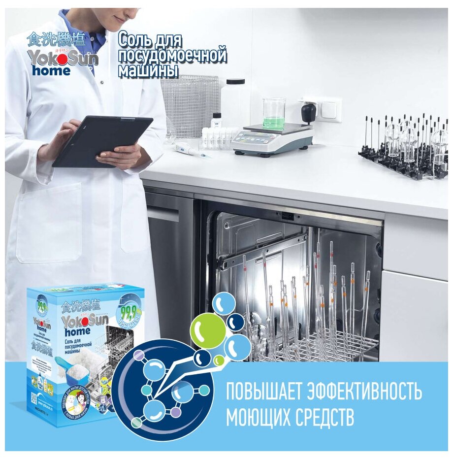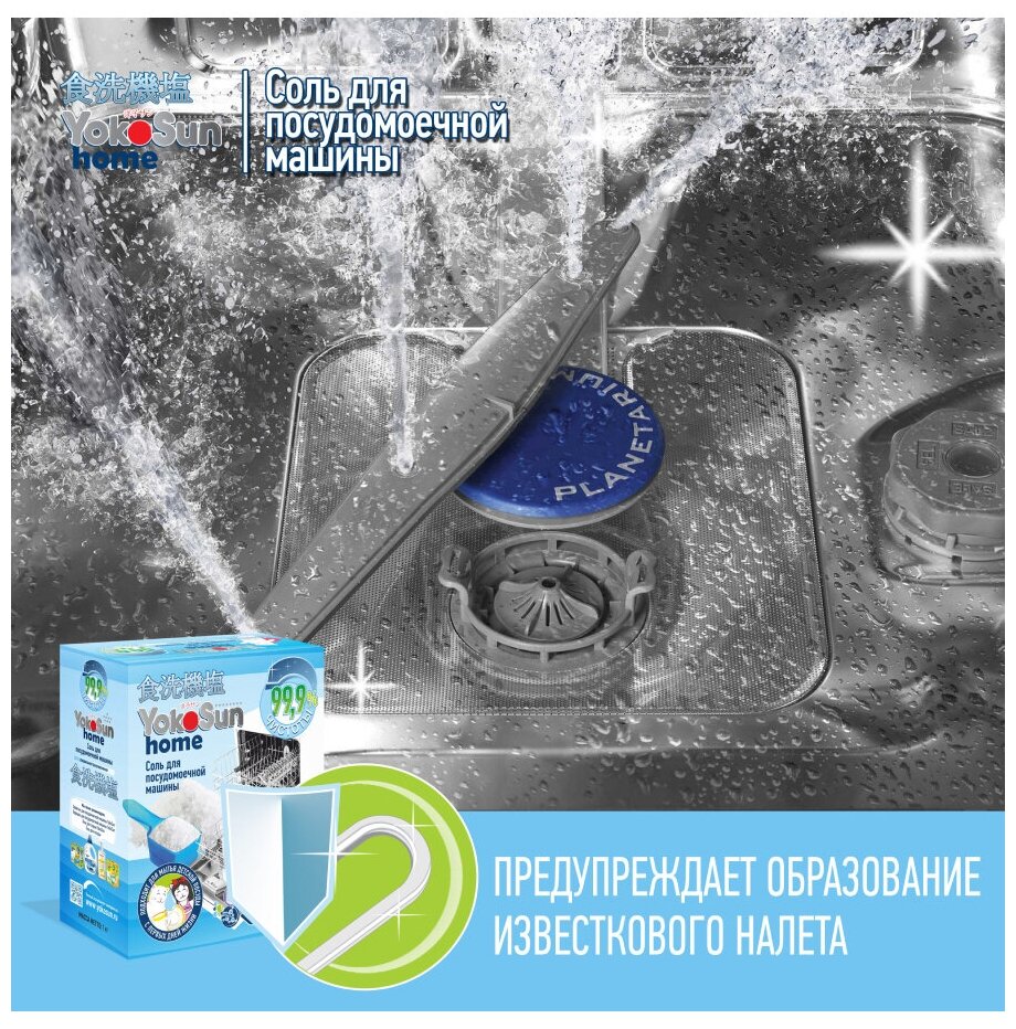 Соль для посудомоечной машины YokoSun. Специально разработана для домашних посудомоечных машин всех типов. Особая формула эффективно смягчает воду, предотвращая образование накипи и известкового налета. Обеспечивает экономичный расход и повышает эффективность моющих средств для посудомоечных машин.