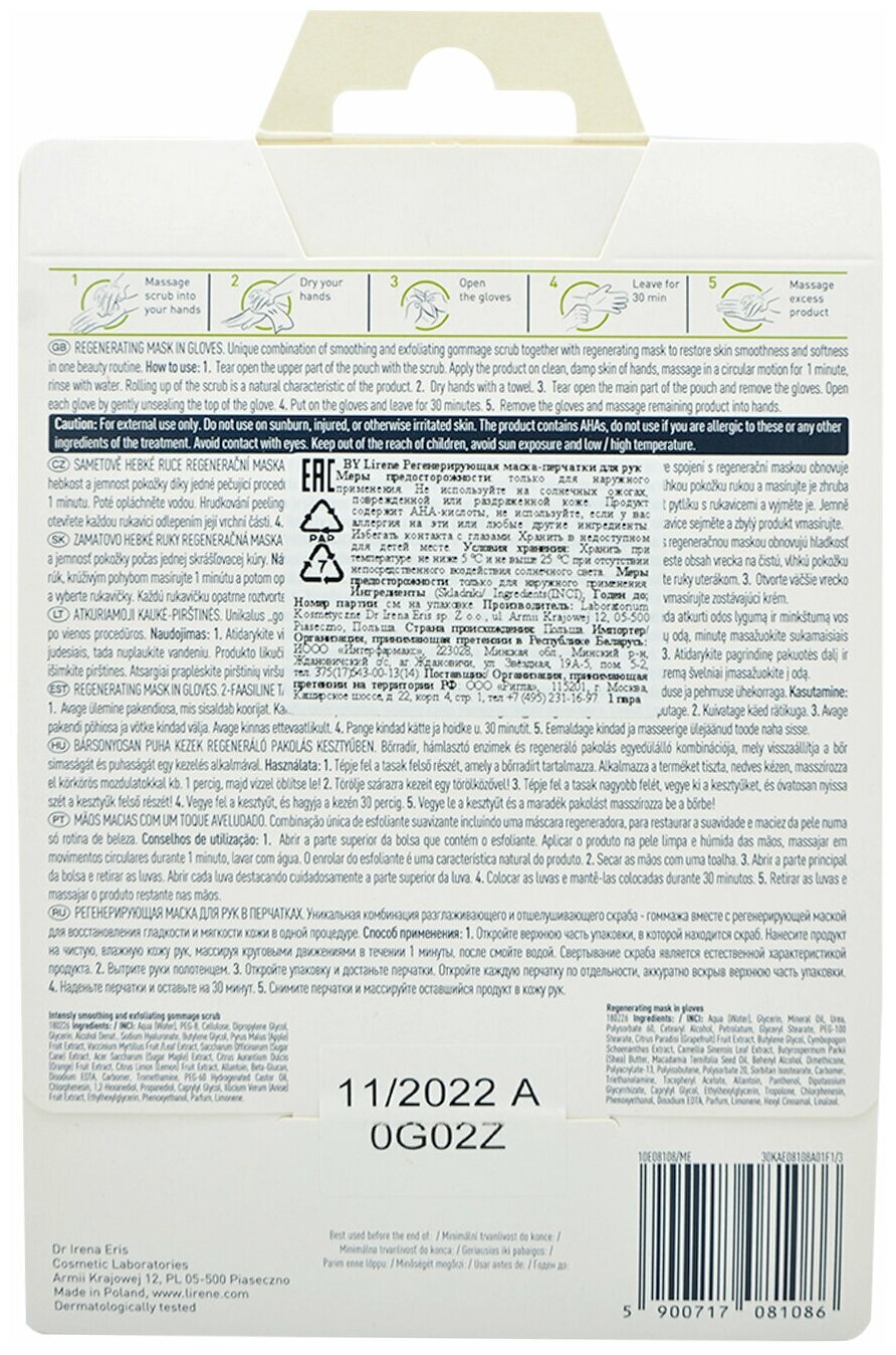 Лирен маска-перчатки для рук восстанавливающая Бархатные руки №1 Lab. Dr Irena Eris (109198)