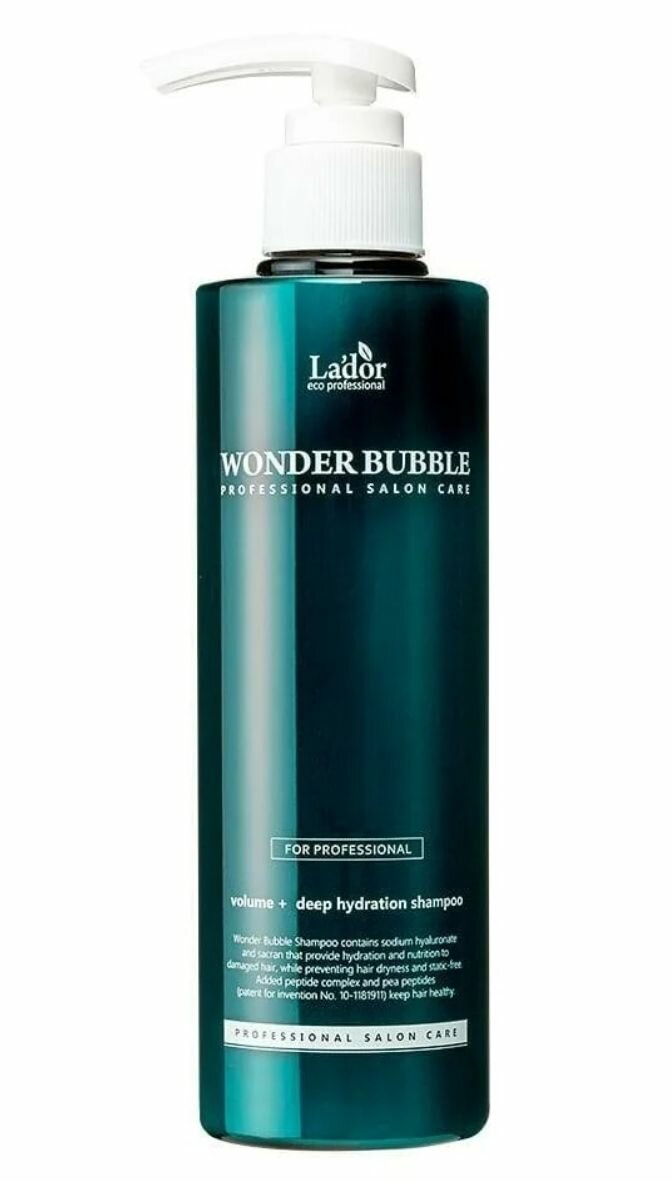La'dor Wonder Bubble Shampoo — это увлажняющий шампунь для волос с эффектом восстановления объёма. Он эффективно очищает локоны и кожу головы, устраняет перхоть, восстанавливает гладкость, упругость и эластичность прядей.Активные ингредиентыГиалуроновая кислота. Эта кислота обладает активными влагоудерживающими способностями. Она поглощает молекулы воды и удерживает их в глубоких слоях клеток, позволяя восстановить гармоничный гидробаланс и уберечь пряди от пересыхания.Сакран. Этот компонент представляет собой полисахарид, полученный из водорослей. Он интенсивно увлажняет пряди, смягчает их, разглаживает по всей длине, помогает защитить от ломкости, сечения и пересыхания.Пептидный комплекс. Пептиды имею низкую молекулярную массу, за счёт чего встраиваются в структуру волос, делая их гладкими, упругими, сильными, эластичными и ухоженными. Пептиды также увеличивают толщину и плотность волос, создают прикорневой объём и оберегают пряди от выпадения.Гидролизованный кератин. Этот компонент восстанавливает и разглаживает волосы, улучшает их внешний вид, устраняет спутанность, облегчает расчёсывание и укладку. Он так же обволакивает пряди по всей длине, создавая защитную оболочку, которая удерживает влагу и поддерживает эластичность волос.
