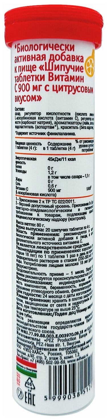 Будь Здоров! Витамин С цитрусовый таб.шип. 900мг №20 Pez Production Europe Kft. (112343)