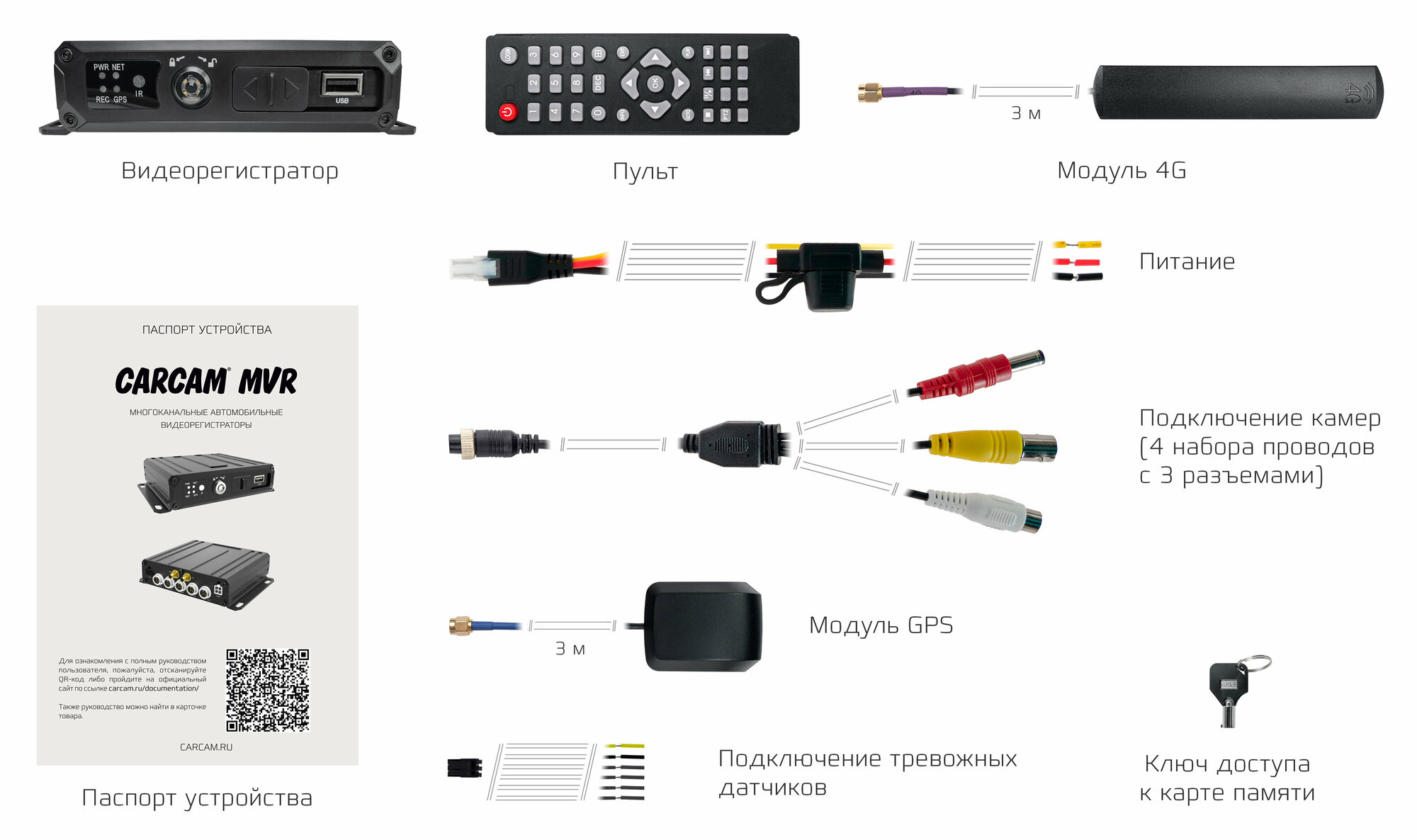 CARCAM - автомобильный 4-канальный видеорегистратор с возможностью подключения камер Full HD разрешения с GPS и 4G. Сохранение записанного видео производится на карту памяти SD объемом до 256 гигабайт. Кроме того, видеорегистратор поддерживает подключение охранных датчиков, датчика скорости, зажигания, уровня топлива и многого другого. Оборудование обладает компактными габаритами, что обеспечивает максимально быструю установку практически на любом транспортном средстве.