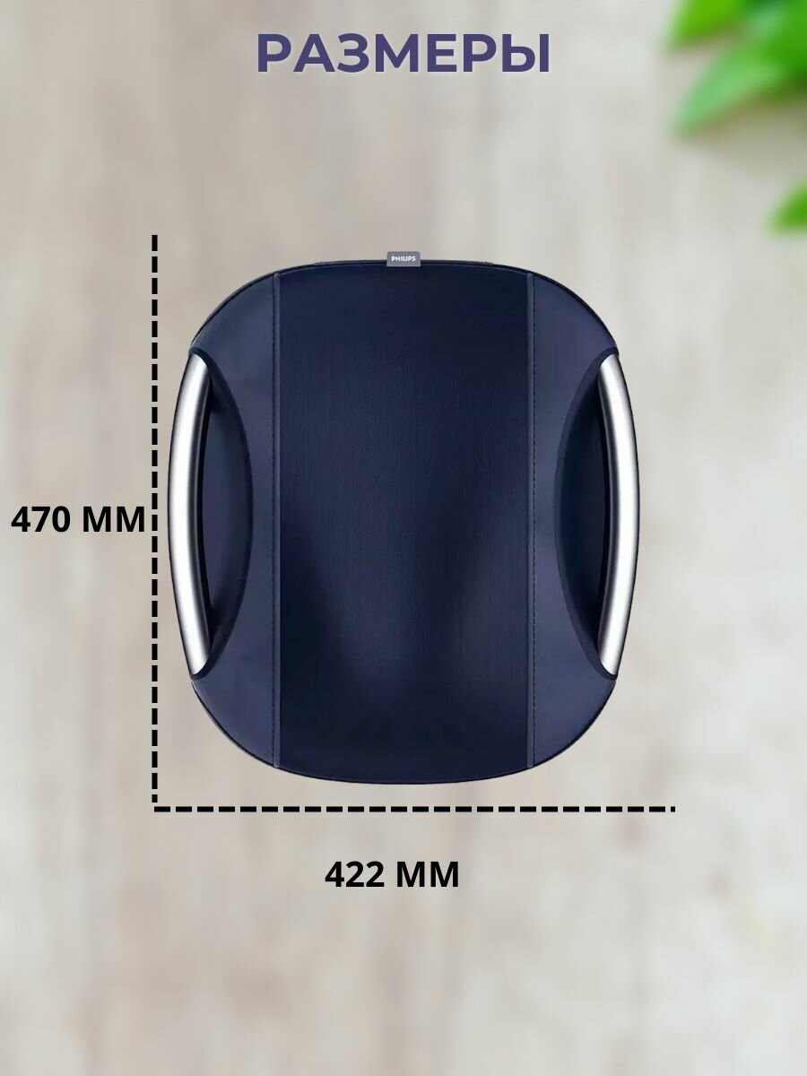 Philips Back Massager (PPM4501) Blue - массажер для спины и постоянным подогревом. 12 массажных узлов охватывающие всю спину и талию позволяют получить опыт глубокого расслабления. Улучшает циркуляцию крови, устраняет боль и отечность и снимает боль в мышцах.