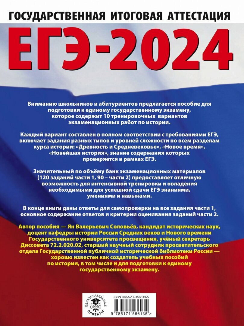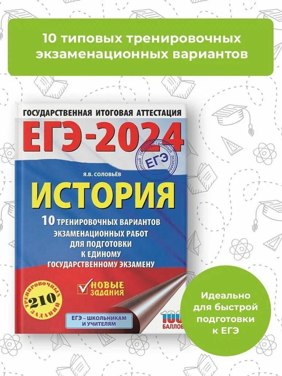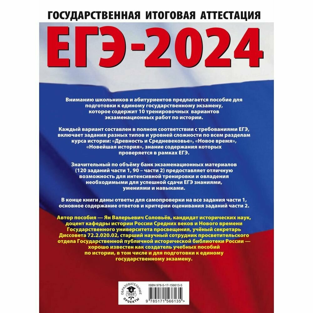 ЕГЭ-2024. История (60x84/8). 10 тренировочных вариантов экзаменационных работ для подготовки к единому государственному экзамену (Я. В. Соловьев); Издательство АСТ, 2023