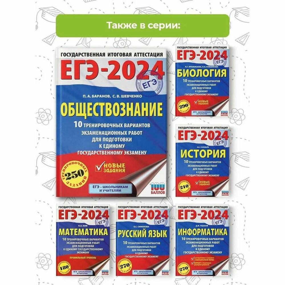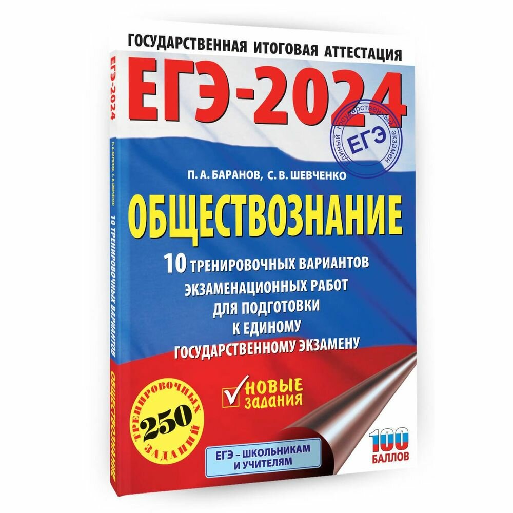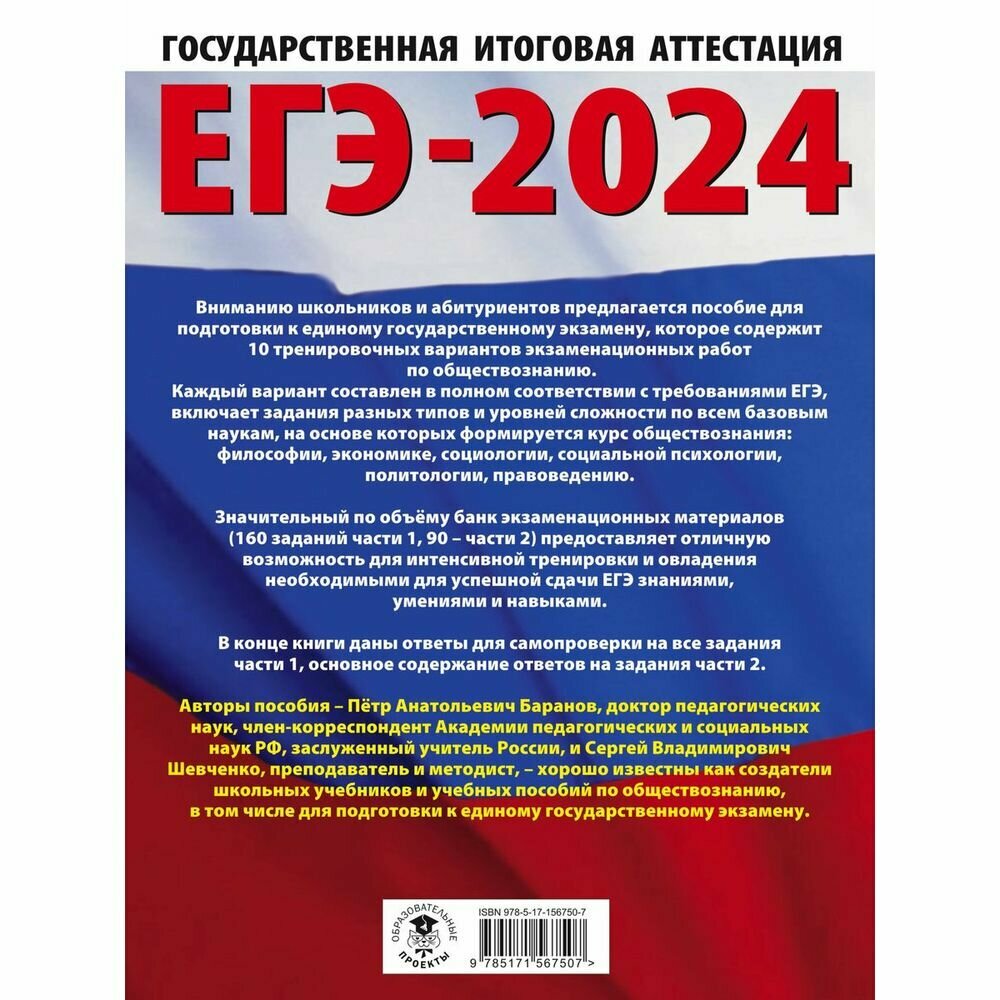 ЕГЭ-2024. Обществознание (60x84/8). 10 тренировочных вариантов экзаменационных работ для подготовки к единому государственному экзамену (Шевченко Сергей Владимирович, Баранов Петр Анатольевич); Образовательные проекты, 2023