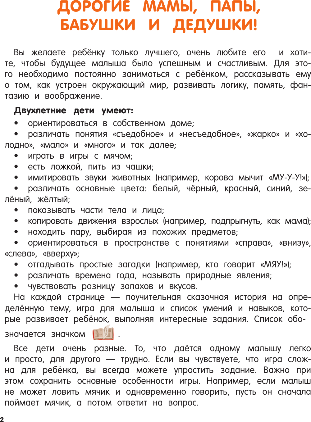Книга «Я знаю и умею в 2 года» — это идеальный вариант для родителей, которые хотят, чтобы их малыш развивался гармонично. На каждом короткие весёлые истории, задания в игровой форме, которые способствуют эмоциональному, физическому и интеллектуальному развитию ребёнка.