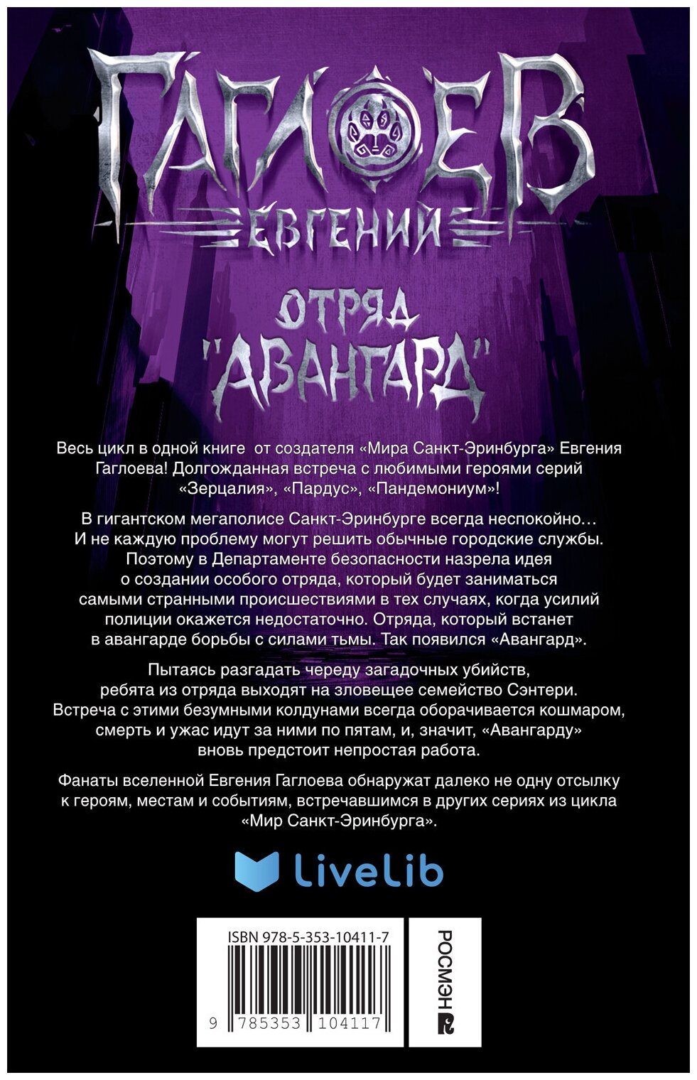 В одном томе – весь цикл «Авангард» от мастера современного городского фэнтези Евгения Гаглоева. Увлекательная современная проза для подростков, наполненная мистикой, неожиданными поворотами сюжета и тонким юмором. «Авангард» расширяет созданную автором вселенную «Мир Санкт-Эринбурга». Читателей ждет новая встреча с любимыми героями из серий-бестселлеров «Зерцалия», «Пардус» и «Пандемониум», а также захватывающие приключения, опасные тайны и расследования с риском для жизни.В издание вошли сразу три части цикла: «Клинок пери»«Багровая графиня»«Темный наследник»Неспокойно на улицах гигантского мегаполиса, все чаще в жизнь Санкт-Эринбурга вторгается сверхъестественное. Поэтому в Департаменте безопасности сформирован особый отряд «Авангард», и набирают в него молодых ребят с необычными способностями – им предстоит заниматься самыми странными происшествиями, когда сил полиции окажется недостаточно. Юными следователями стали Никита Легостаев и Татьяна Пожарская, а под подозрением - метаморфы, ведьмы, оборотни и зловещие колдуны.Евгений Гаглоев – известный писатель, автор нескольких популярных подростковых циклов в жанре фэнтези и фантастики, обладатель медали имени Н.В. Гоголя, лауреат конкурса «Новая детская книга», дважды победитель конкурса «Книга года: выбирают дети», лауреат литературной премии «Алиса».