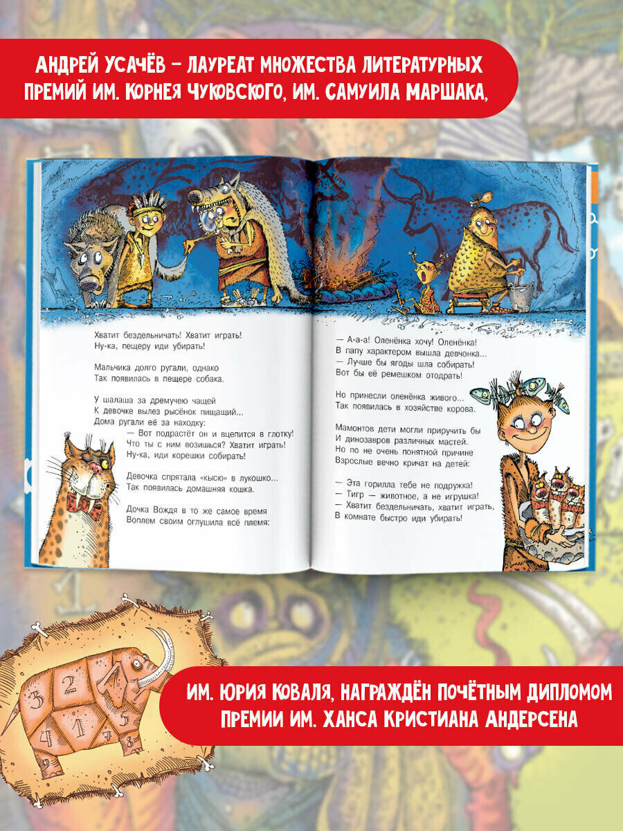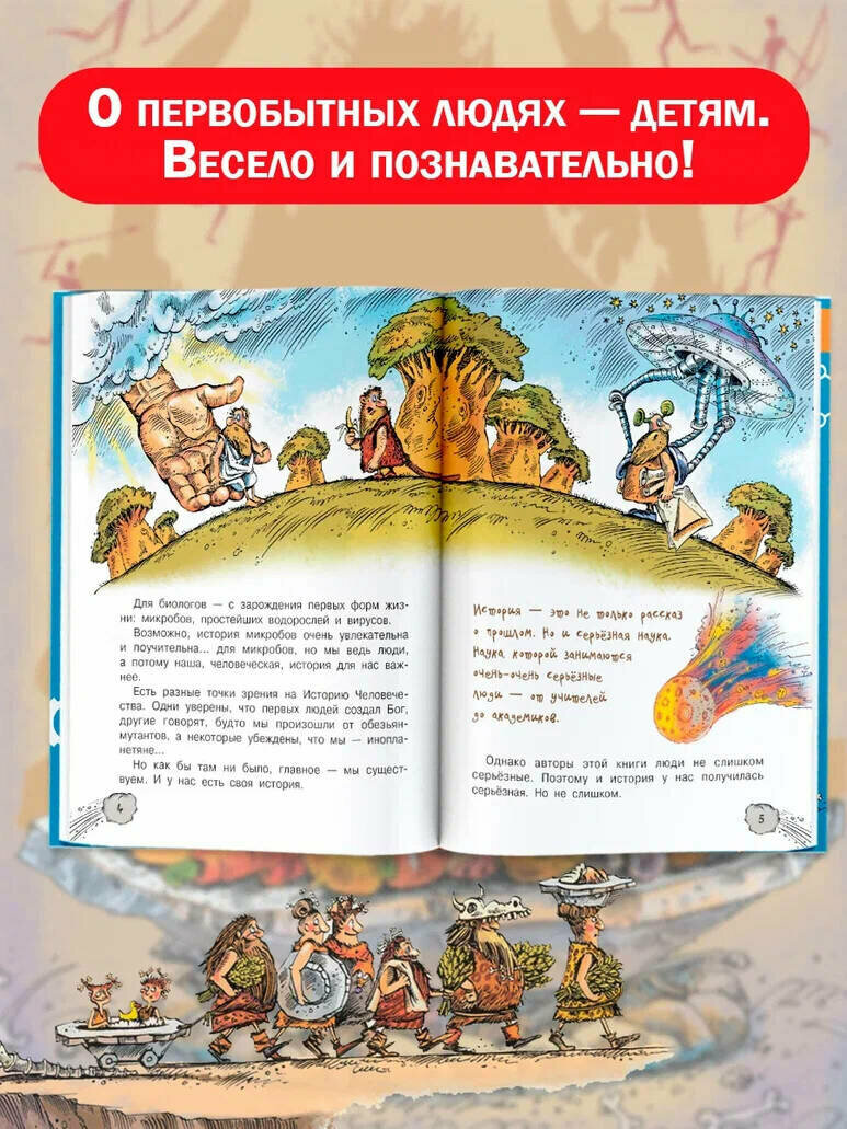 Эта весёлая и невероятно увлекательная книга расскажет о древних-древних временах, когда наша планета была совсем ещё молоденькой и по ней бродили динозавры, а потом... Потом на ней появились первобытные люди! Они охотились на мамонтов, изобретали письменность и счёт, первые виды спорта, первобытную моду, первобытную музыку и даже стихи. Хи-хи!