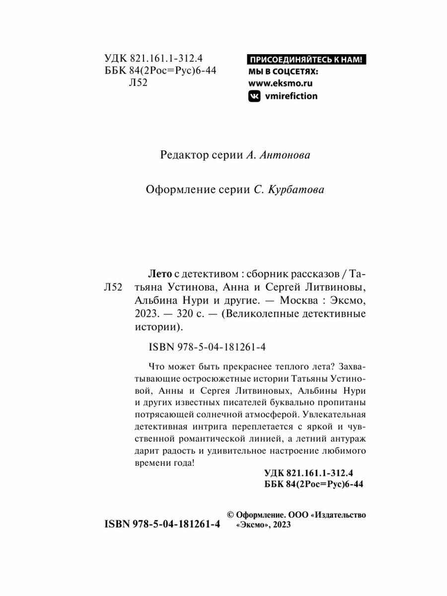 Книга: Лето с детективом (Романова Галина Владимировна, Устинова Татьяна Витальевна, Михайлова Евгения, Нури Альбина, Руж Александр, Корбут Янина); ООО "Издательство "Эксмо", 2023