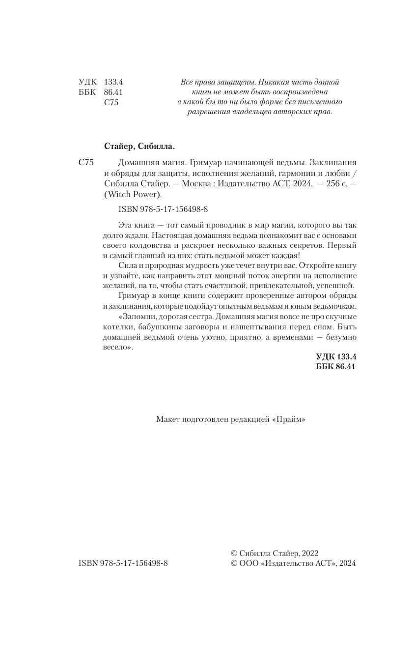Домашняя магия. Гримуар начинающей ведьмы. Заклинания и обряды для защиты исполнения желаний гармонии и любви (Сибилла Стайер); Издательство АСТ, 2023