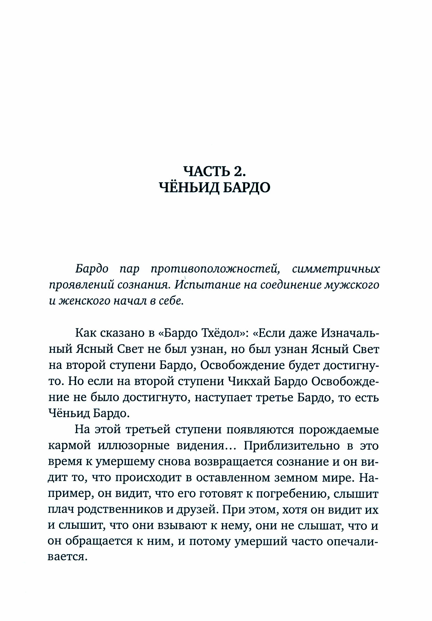 Первая часть представляет собой анализ текста "Тибетской книги мертвых" с позиции западного психолога-исследователя. Выявлены и достаточно подробно рассмотрены аналогии в символическом описании посмертных состояний, характерные для различных религиозно-философских и научных систем (буддизм, индуизм, христианство, современная психология).