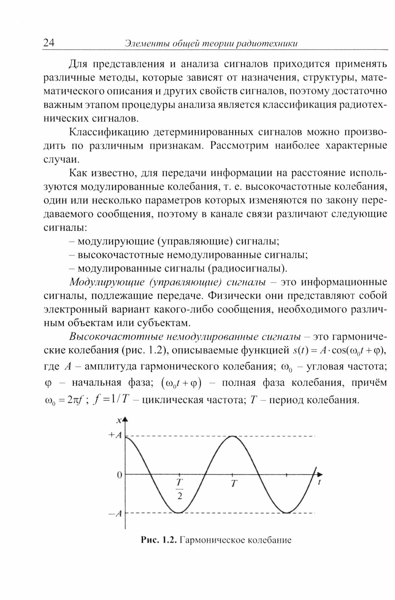 Рассматриваются основные вопросы теории детерминированных сигналов: спектральный и временной анализ немодулированных и модулированных сигналов, проблемы дискретизации аналоговых сигналов, методы формирования и основных преобразований сигналов, методы расширения спектра сигналов.
