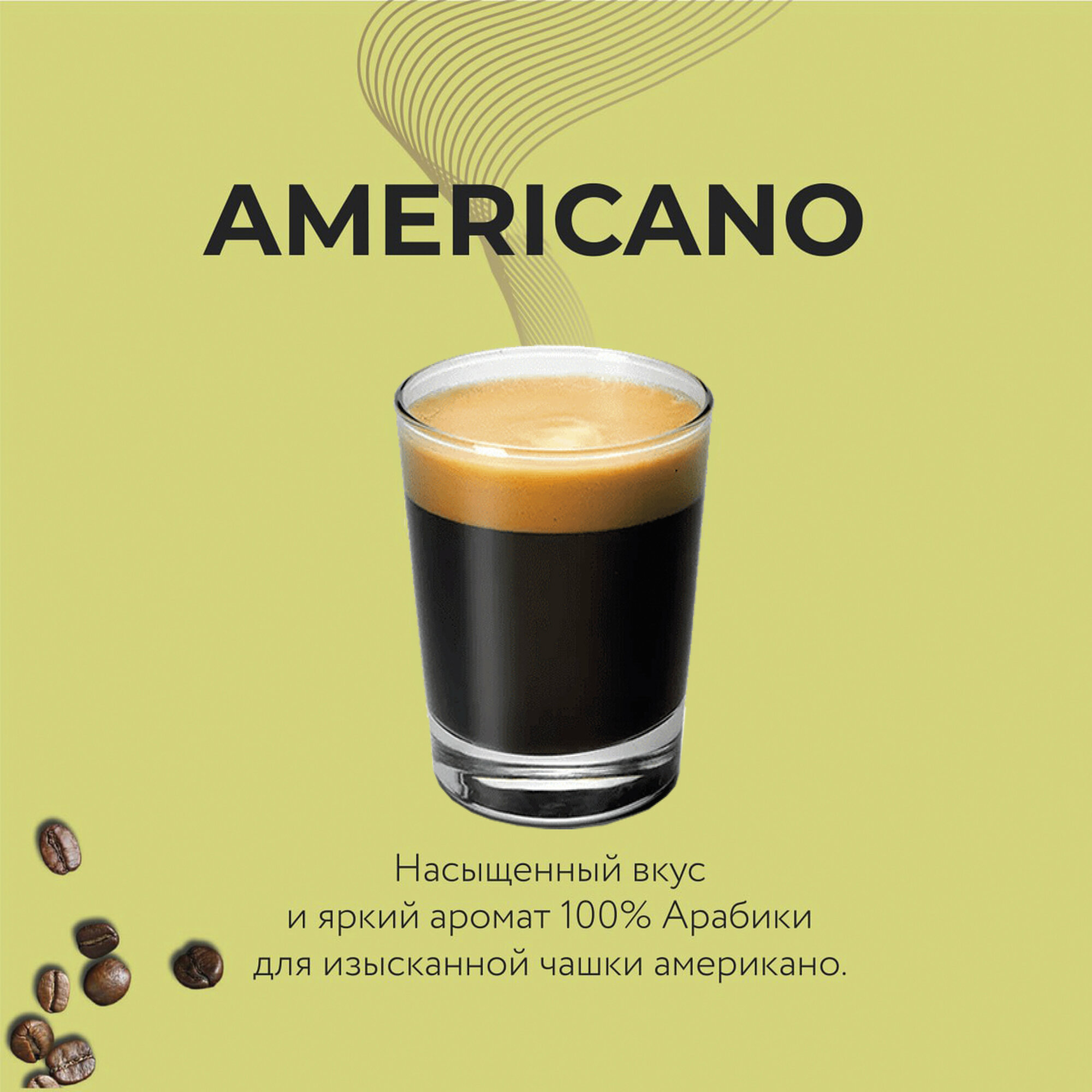 Насыщенный вкус и яркий аромат 100% Арабики для изысканной чашки американо. Вкус и аромат сохраняются благодаря технологии бескислородной фасовки. Перфорированная мембрана обеспечивает равномерный пролив. Барьерный материал капсулы препятствует окислению кофе. Мембрана обеспечивает герметичность капсулы. Оптимально подобранный помол позволяет добиться правильной и равномерной экстракции. Специальный фильтр предотвращает попадание частичек кофе в напиток.