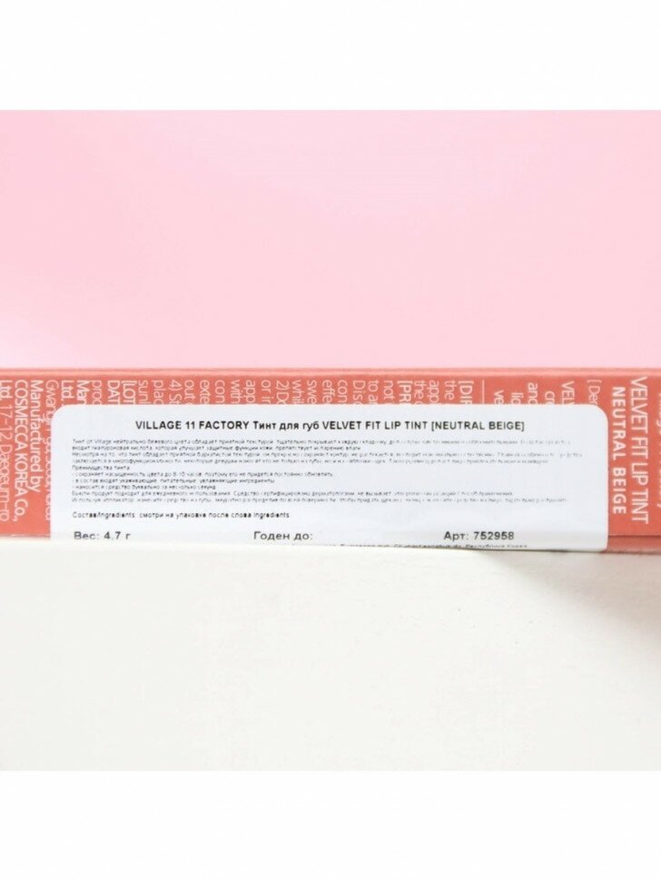Тинт от Village – универсальное средство, решающее сразу несколько задач: обеспечивает яркий, насыщенный цвет губ, дарит нежный румянец. В составе средства 3 вида гиалуроновой кислоты. Эти ингредиенты питают и увлажняют поверхность кожи, делают ее более эластичной. Благодаря шелковистой консистенции, бьюти-продукт легко и быстро наносится на губы, дает моментальный эффект. Тинт заполняет все морщинки и трещинки, не растекается, сохраняет контур. Тинт позволяет не тратить много времени на создание макияжа. Он характеризуется стойкостью и не «съедается» даже после страстных поцелуев, его не нужно обновлять на протяжении дня. После нанесения, губы остаются сочными и чувственными около 8-10 часов
