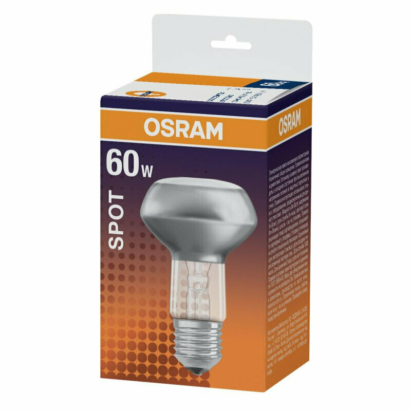 | Описание | Лампа накаливания OSRAM CONCENTRA R63 60W E27 длина 104 мм Диаметр 63 м |