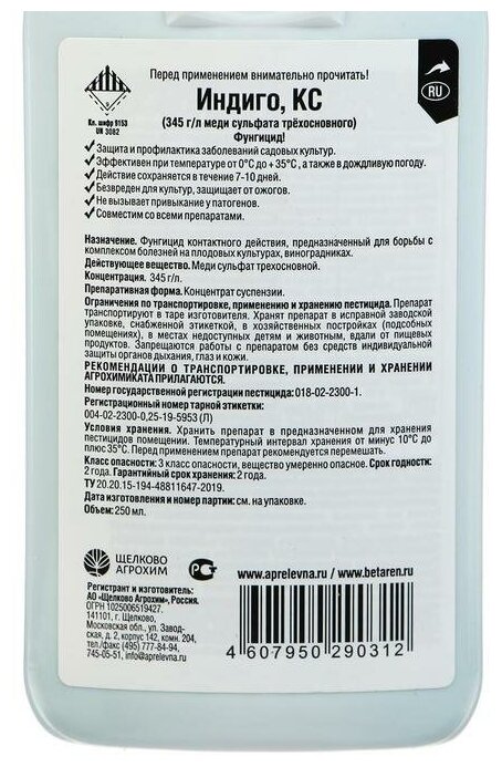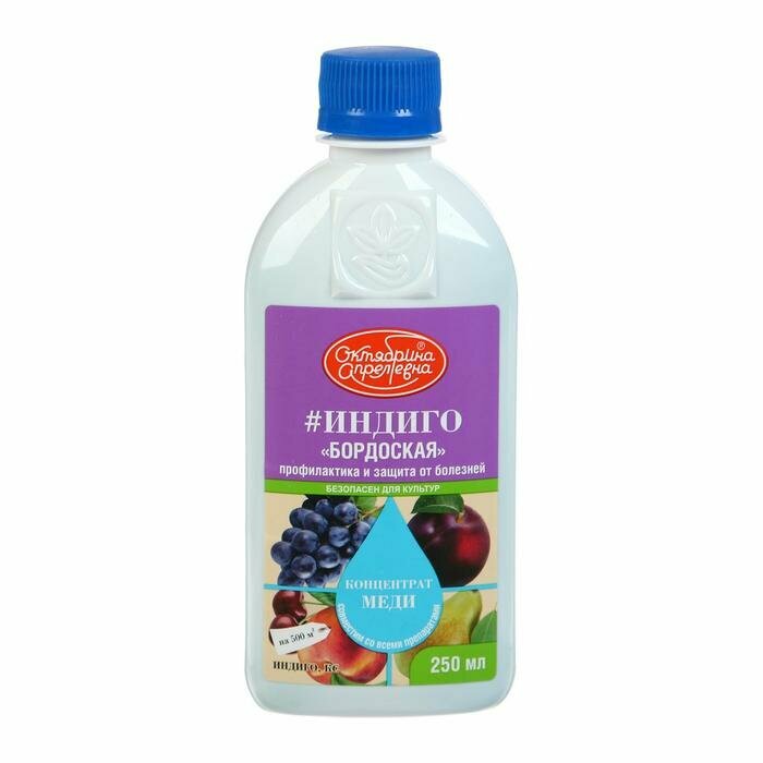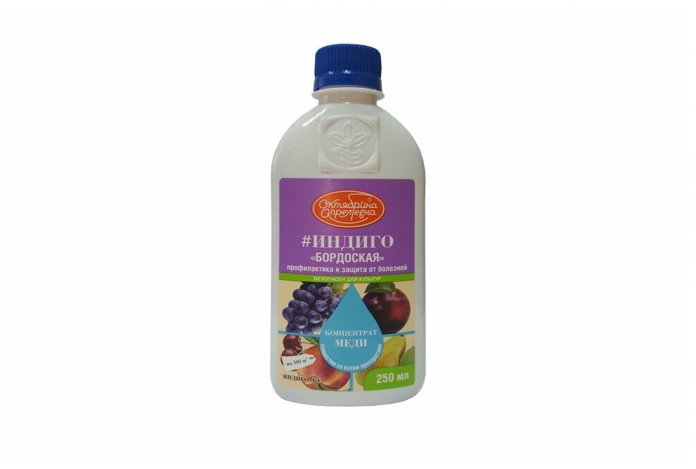 **Фунгицид Индиго** предназначен для защиты плодово-ягодных культур от различных заболеваний, в том числе грибка. Средство содержит концентрат меди, которая используется как подкормка. Перед применением препарат разводится водой.