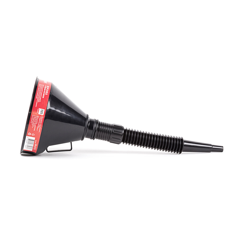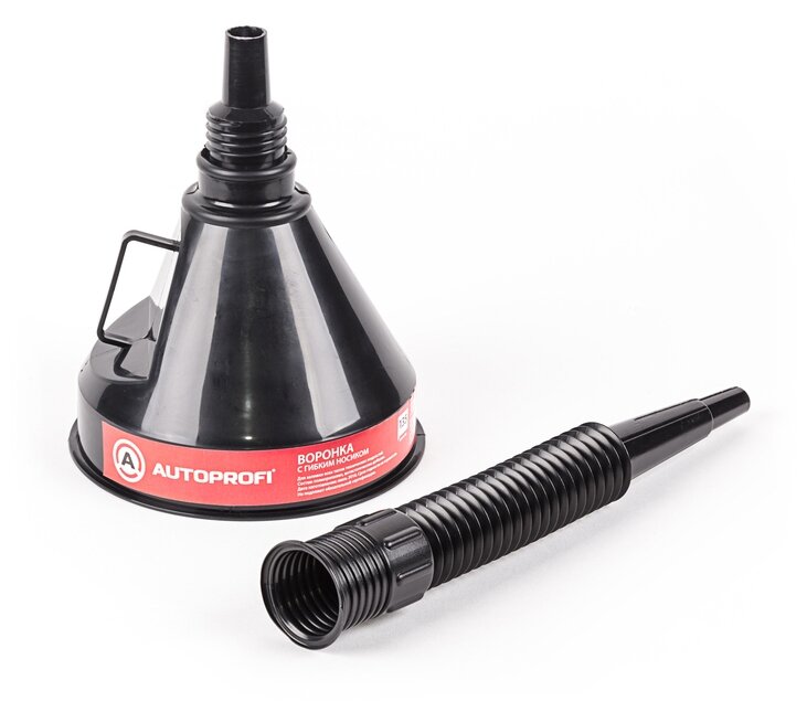 Воронка с гибким носиком АВТОПРОФИ VR-0135. Гофрированный гибкий удлиненный носик позволяет переливать технические жидкости любого вида, легко чистится. Встроенный сетчатый фильтр. Крепление носика к воронке -винтовое. Удобная ручка-держатель. Диаметр — 135 мм. Страна производства: Россия.