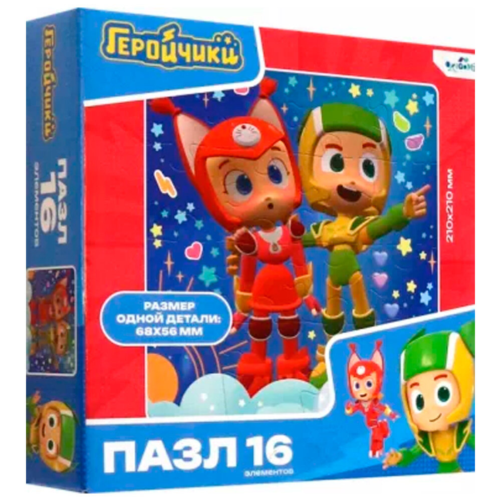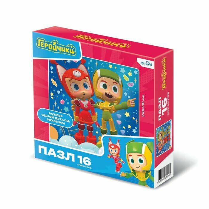 Пазл 16 элементов, основанный на любимых сюжетах мультфильма "Геройчики" понравится любому ребенку, а сборка яркой картинки принесет радость не только малышам, но и их родителям. Соберите всю коллекцию новых пазлов!