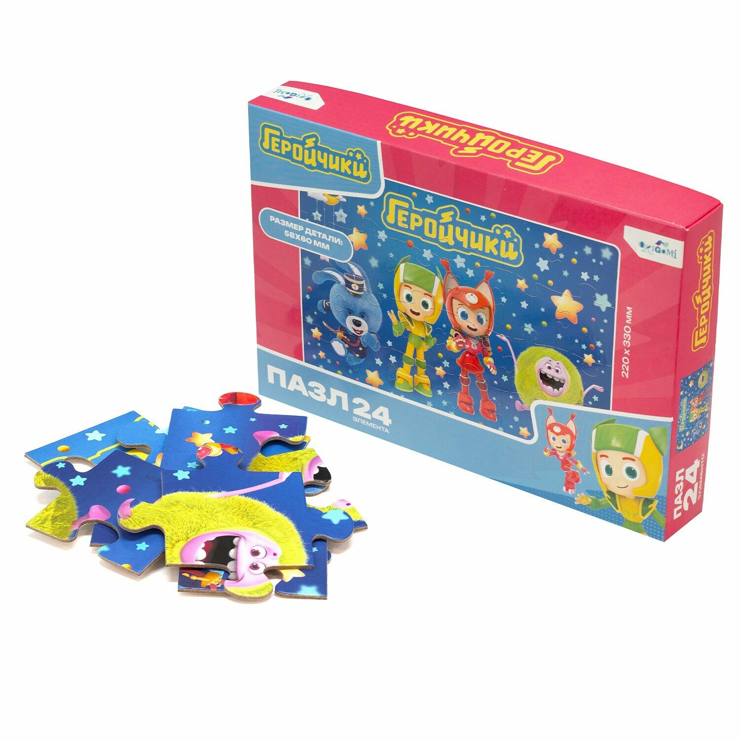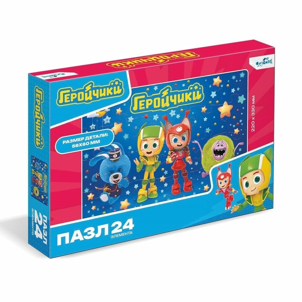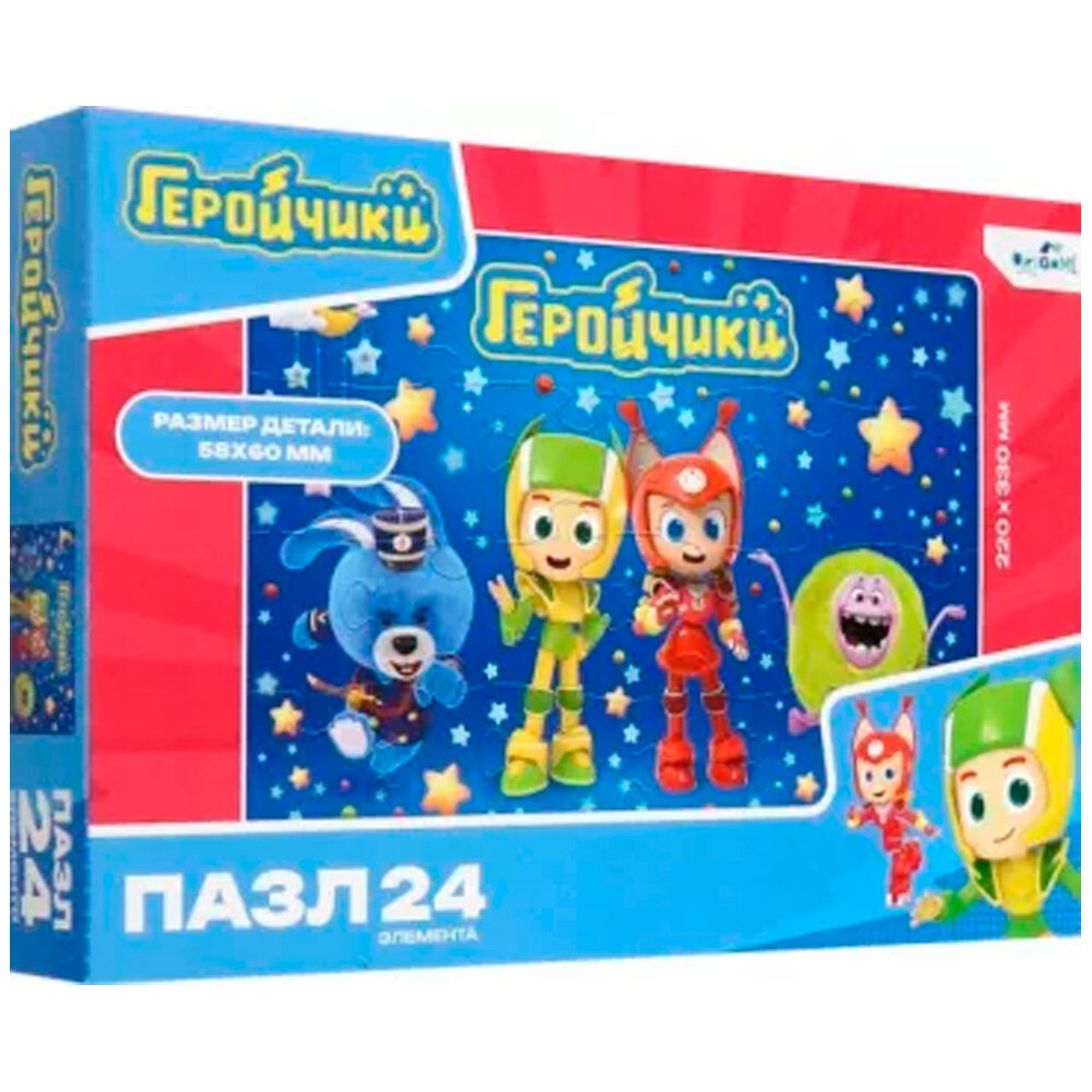 Пазл 24 элемента с забавными героями мультфильма Геройчики обязательно понравится малышу, а сборка яркой картинки принесет радость не только детям, но и их родителям. Крупные детали пазла удобно ложатся даже в самую маленькую ручку и их комфортно собирать на полу.