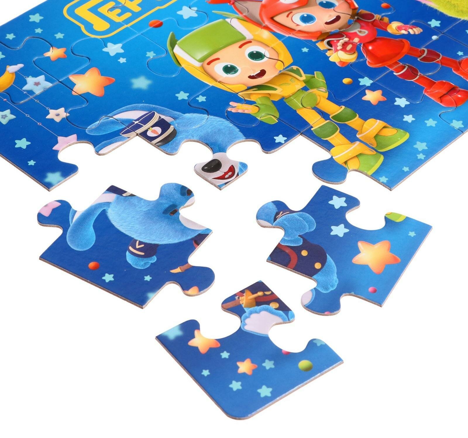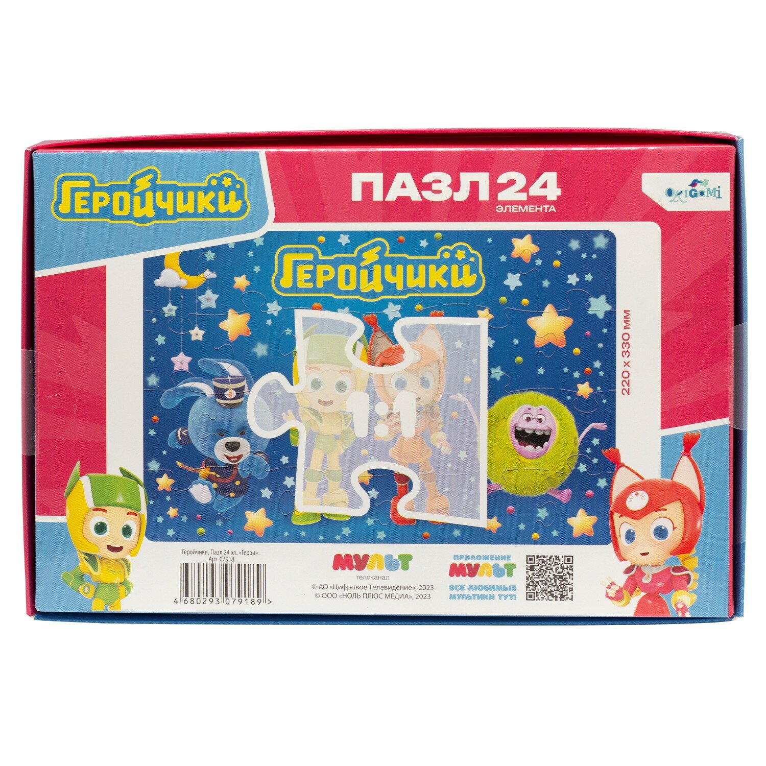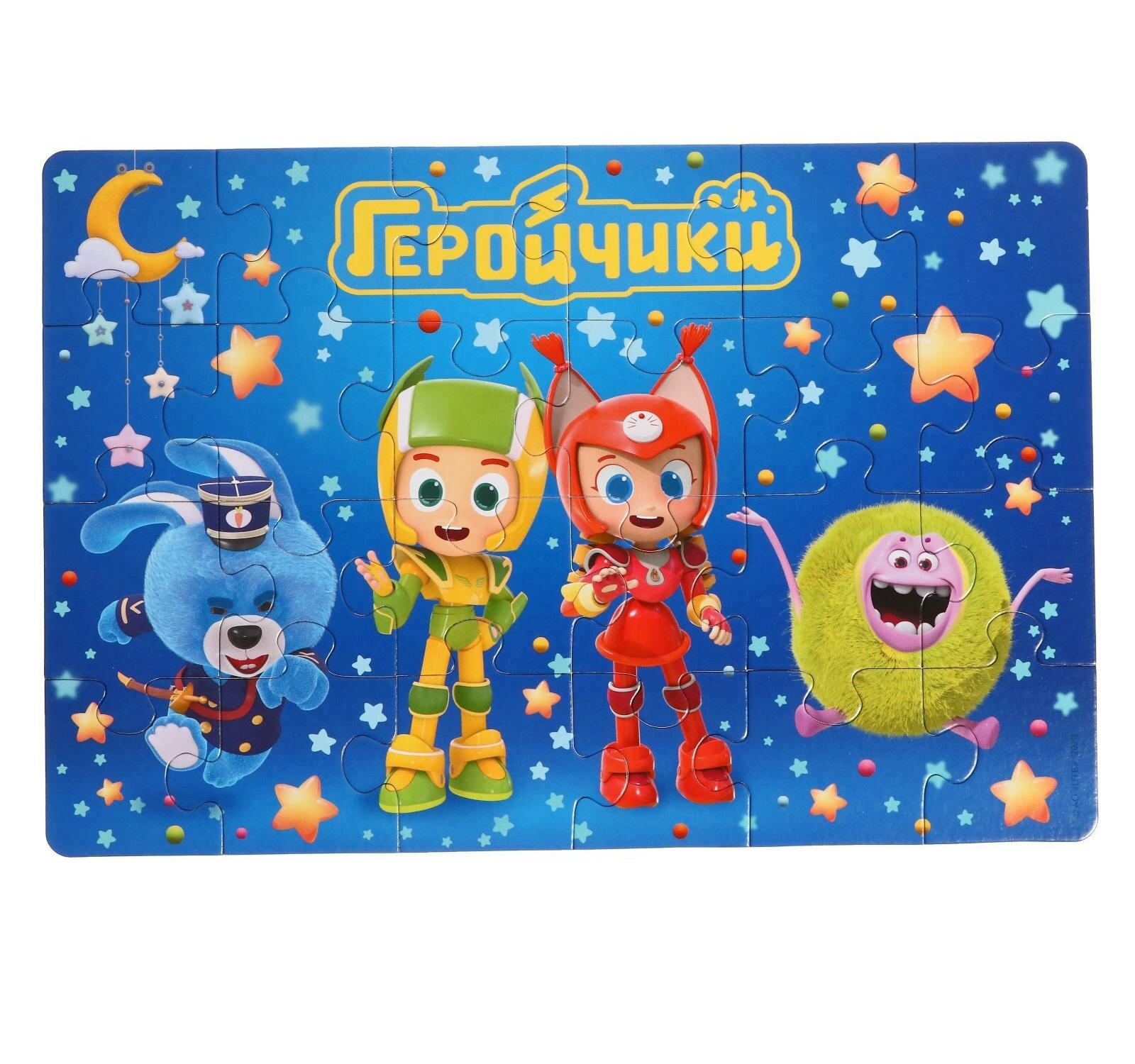 Пазл 24 элемента с забавными героями мультфильма Геройчики обязательно понравится малышу, а сборка яркой картинки принесет радость не только детям, но и их родителям. Крупные детали пазла удобно ложатся даже в самую маленькую ручку и их комфортно собирать на полу.