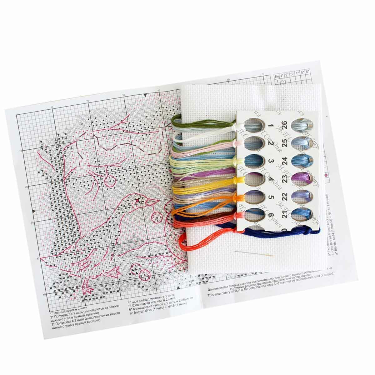 | Комплектация | канва Aida 14 ct белая; нитки мулине ПНК им.Кирова; игла; схема и руководство по вышиванию |