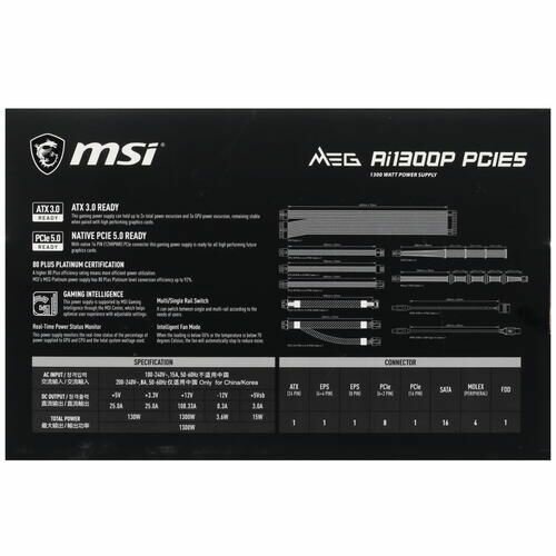 Блок питания ATX MSI 1300W APFC 80+ Platinum 120mm fan full modular (ATX 12V 3.0) RTL MEG Ai1300P PCIE5