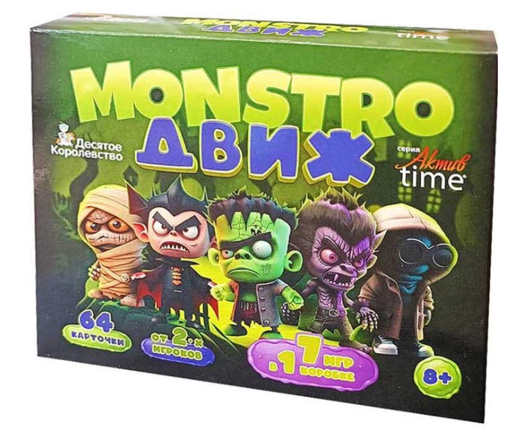 Наберитесь смелости и отправьтесь в увлекательное приключение по заколдованному лесу с настольной игрой "Monstro движ"! Вас ждут 5 пугающих попутчиков, такие как Мумия, Оборотень, Монстр Франкенштейна, Дракула и Человек-Невидимка, и целых 7 режимов игры! Выберите, в какой хотите сыграть, раздайте игрокам карты в соответствии с памяткой режима и отправляйтесь в путь!