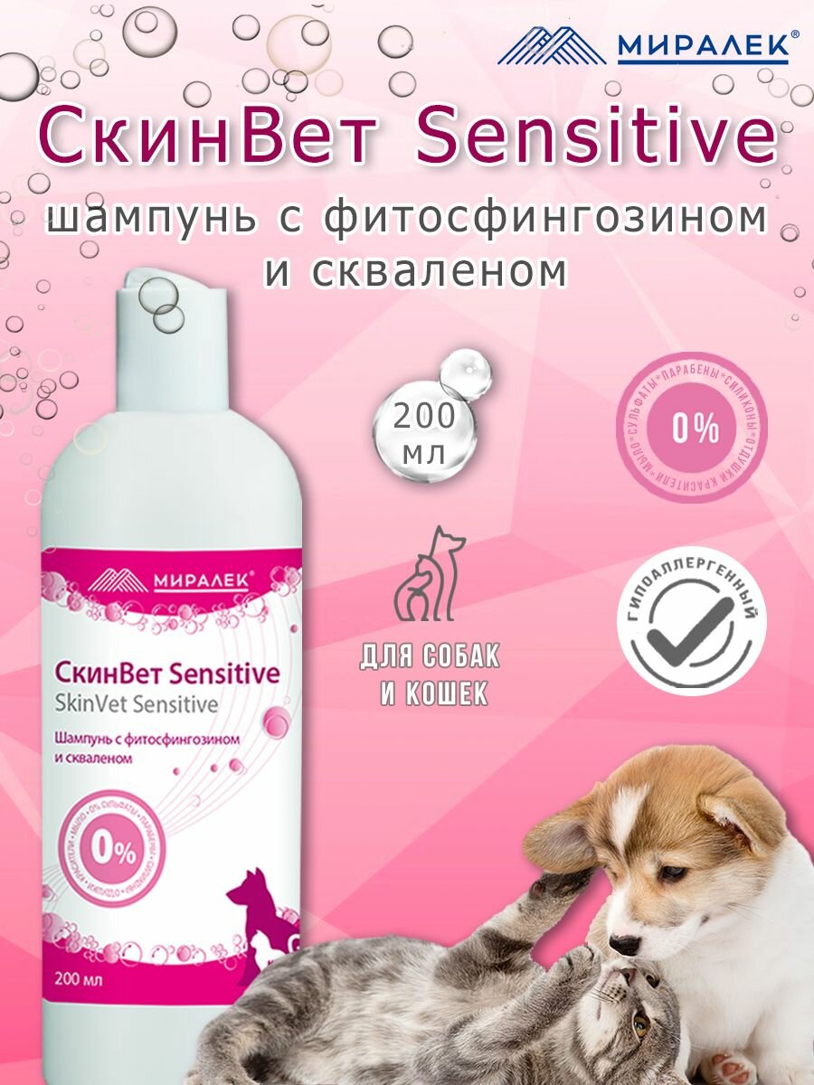 МИРАЛЕК Шампунь СкинВет Sensitive со скваленом и фитосфингозином 200мл