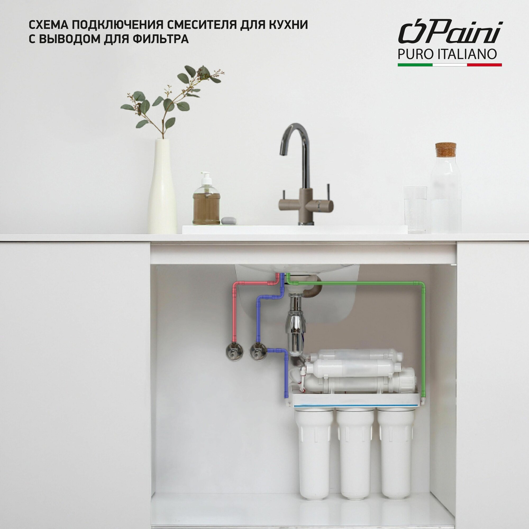 Оптимизируем мокрую зону на кухне со смесителем Paini Cox на 3 воды. Однорычажный смеситель классической формы, но с одной важной деталью: фильтр для воды подключается прямо к смесителю. Легкий монтаж без дополнительных отверстий в столешнице, теперь для доступа к питьевой воде нужно просто повернуть рычаг на корпусе смесителя. Покрытие выполнено по специальной технологии, сохраняющей цвет и фактуру надолго и облегчающей уход за смесителем. 3 воды в одном корпусе. Подключение фильтра для воды прямо к смесителю. Обратите внимание, фильтр для воды не входит в комплект поставки. Технологии гарантируют долгий срок службы Фабрика Паини использует только лучшие комплектующие. Аэратор Neoperl наполняет поток воды кислородом, увеличивает напор, экономя воду. Одно движение пальцем для очистки сеточки. Керамический картридж Nuovo Galatron – основа, необходимая для долгой работы смесителя. Легкая уборка. Несколько движений – и готово. Мыльная губка и сухая тряпочка – все, что нужно для уборки.