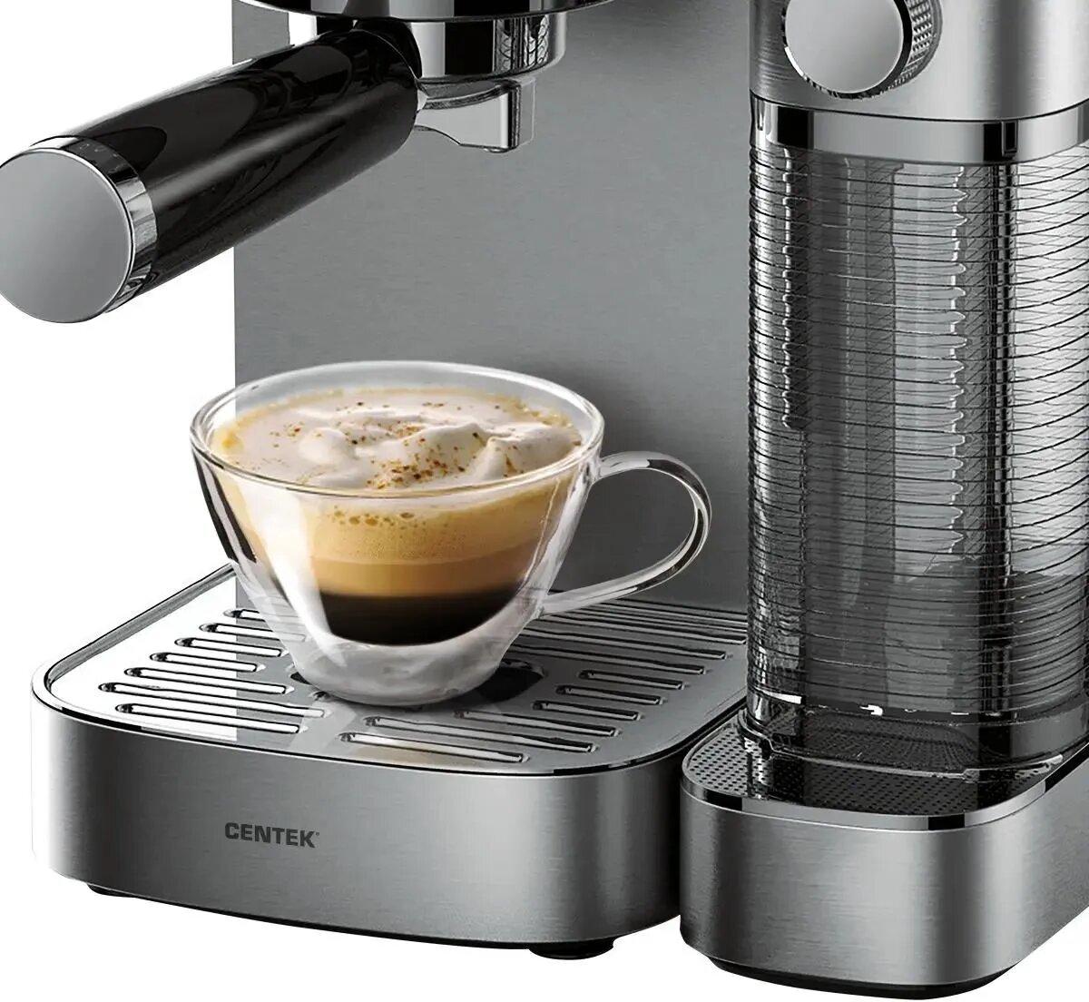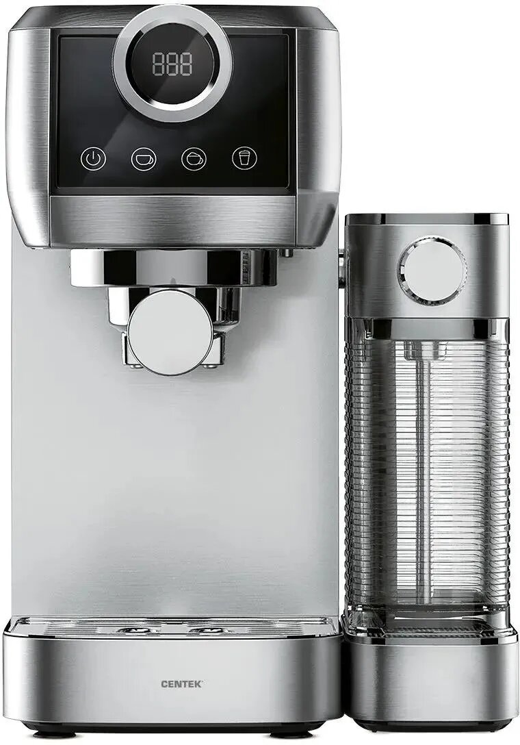 Рожковая кофеварка Centek - стильное и современное решение на вашей кухне. Приготовьте эспрессо, капучино или латте и насладитесь ароматным кофе, который взбодрит, придаст энергии и подарит хорошее настроение на целый день. ОСОБЕННОСТИ УСТРОЙСТВА: Мощность: 1350 Вт Управление: сенсорное Тип конструкции: рожковая Давление: 20 бар Объем (вода/молоко): 1300/700 мл Мерная ложка Режимы: автоотключение, удаление накипи LED-дисплей Автоматическая система вспенивания молока Регулируемое время вспенивания молока Регулируемый объем эспрессо Гарантия: 1 год