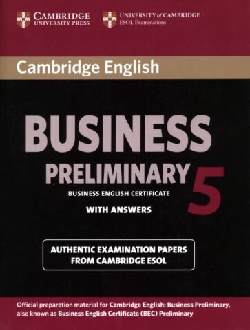 Cambridge English: Business Preliminary 5 provides four complete past papers for the Cambridge English: Business Preliminary exam (also known as BEC Preliminary). These examination papers from University of Cambridge ESOL Examinations (Cambridge ESOL) provide the most authentic exam preparation available, allowing candidates to familiarise themselves with the content and format of the examination and to practise examination techniques. It also contains a comprehensive section of keys and transcripts, making it suitable for self-study.