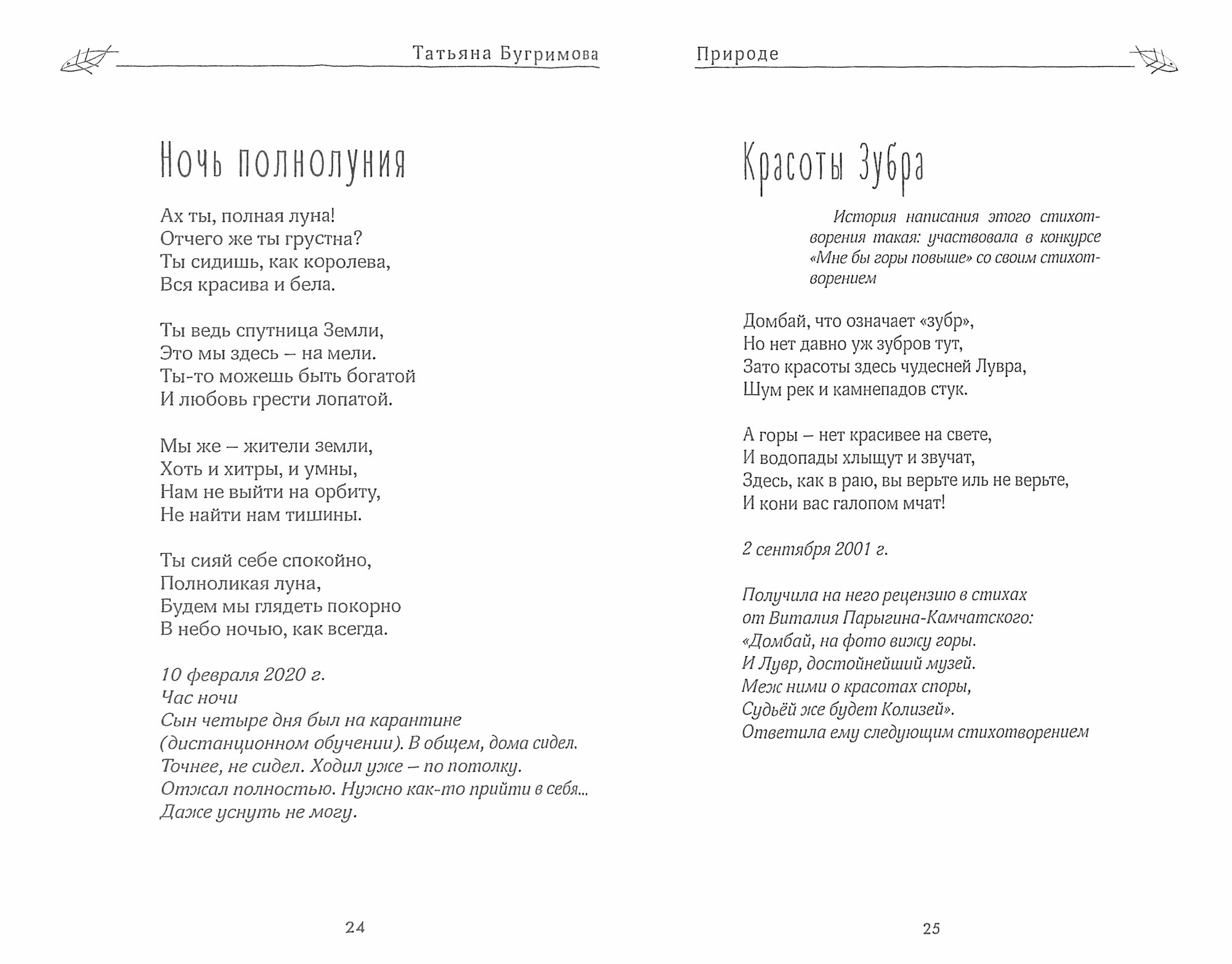 Татьяна Бугримова пишет стихотворения на темы, которые близки каждому. В её поэзии много искренних эмоций и чувств, без которых невозможно представить нашу жизнь и которые встретят мгновенный отклик в душе читателя. Эта книга - лекарство от одиночества, ведь даже если вы прямо сейчас грустите, ревнуете, если вам больно - всегда найдётся человек, испытавший то же самое. Человек, превративший золу переживаний в золото творчества.