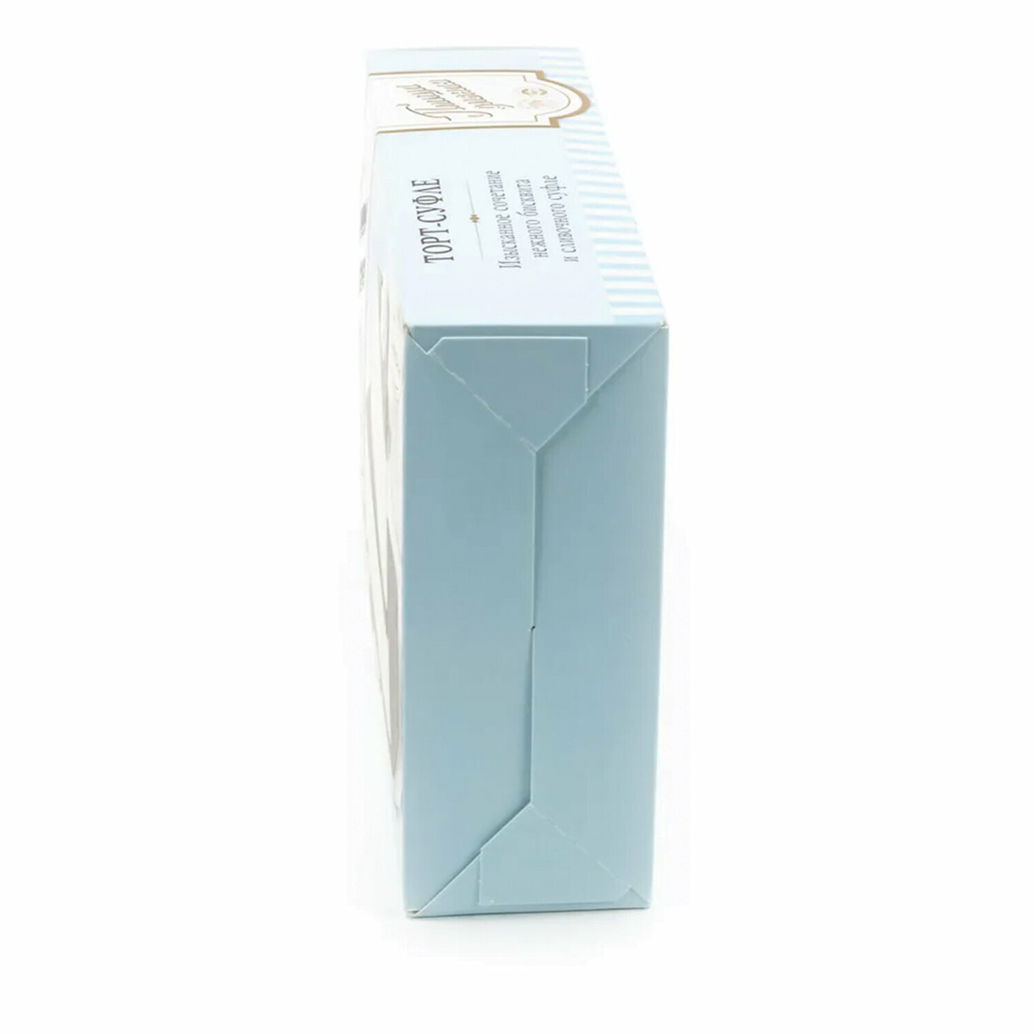 Торт, состоящий из слоя бисквита с какао и сливочного суфле, изготовленного на основе 100%-м сливочном масле, покрытый молочной шоколадной глазурью и декорированный.
