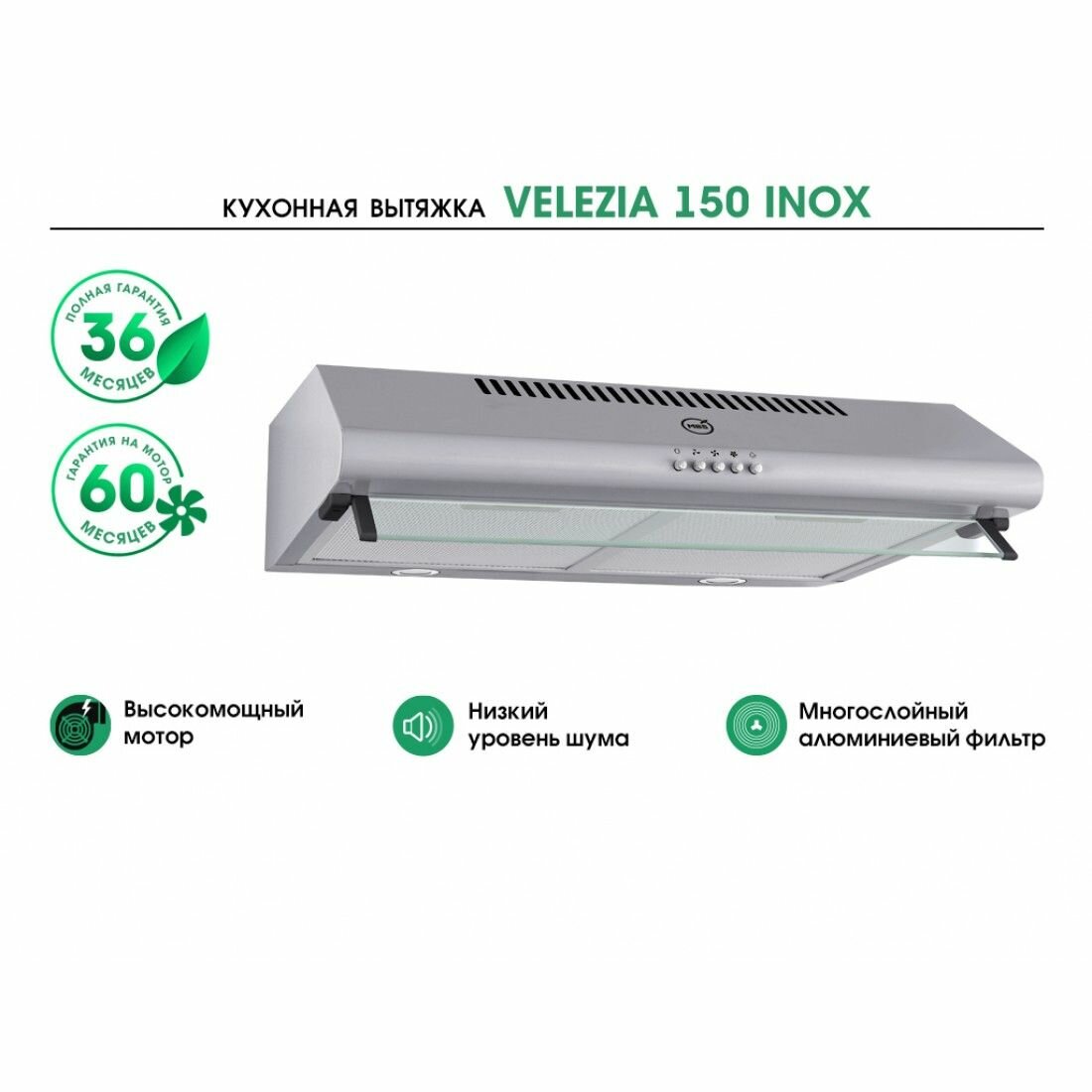Надежная и простая подвесная кухонная вытяжка VELEZIA 150 INOX легко очистит вашу кухню от неприятных запахов, пока вы заняты готовкой. Ее эффективный малошумный мотор может работать как в режиме рециркуляции, так и в режиме воздухоотведения. Универсальный внешний вид и коричневый цвет вытяжки VELEZIA 150 INOX позволит ей прекрасно смотреться на самой небольшой кухне любого стиля, а управление ее тремя режимами осуществляется удобными кнопками. Вся кухонная техника бренда MBS соответствует всем современным европейским стандартам, а гарантия производителя составляет 3 года.
