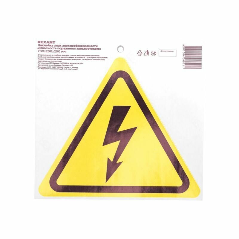 Наклейка Rexant знак электробезопасности "Опасность поражения электротоком"200*200*200 мм 56-0006