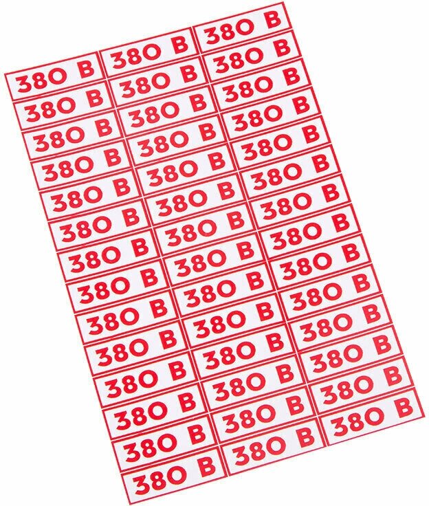 Знак электробезопасности (наклейка) указатель напряжения «380 В» — это информационный знак, который размещается для информирования о напряжении в электрической сети, около розеток и выключателей. Такие наклейки предназначены для предупреждения и информирования окружающих, а также для организации мест работы электромонтажных бригад, несут дополнительную информационную нагрузку.