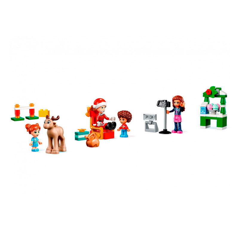 Конструируй и играй с конструктором для девочек и мальчиков - адвент-календарем! Создай предвкушение Рождества с адвент-календарем LEGO Friends (41706). Насыщенный игровой процесс для детей. В комплекте 3 персонажа LEGO Friends, Санта и северный олень, сани, заваленные рождественскими подарками, а также веселые рождественские развлечения. Дети присоединяются к веселому семейному Рождеству Оливии. Дети осматривают веселые прилавки рынка вместе с Оливией, наслаждаясь всеми веселыми рождественскими развлечениями, прежде чем посетить Санту и его оленей. 24 мини-конструктора позволяют детям по ролям строить снеговика, кататься на коньках и играть в караоке, делать игрушечную ракету и есть вкусные праздничные угощения с прилавков. Предрождественский подарок - этот креативный адвент-календарь можно подарить мальчикам и девочкам в возрасте от 6 лет, которые любят праздничные игры, и он будет развлекать их и после декабря. Начните обратный отсчет времени до Рождества с этим особенным подарком - адвент-календарем LEGO Friends (41706). За каждой дверцей находятся подарки, которые ежедневно дарят ощущение праздничного волшебства! Каждый день дети в возрасте от 6 лет открывают для себя новый подарок, который в совокупности создает восхитительную рождественскую сцену, в которой Оливия вместе со своей семьей посещает рождественский рынок. Здесь есть множество веселых развлечений, таких как строительство снеговика, катание на коньках и караоке. Есть также ларьки, где продаются вкусные праздничные блюда, а в одном из них Оливия может построить игрушку-ракету, чтобы подарить ее на Рождество. Перед тем как сфотографироваться с Сантой, герои кормят его оленей сеном. Этот адвент-календарь обеспечивает не только подготовку к Рождеству, но и настоящий конструкторско-игровой опыт, которым можно наслаждаться снова и снова. Колесо игры шансов вращается, персонажи могут опрокидывать банки, а сани Санты прикрепляются к оленям.