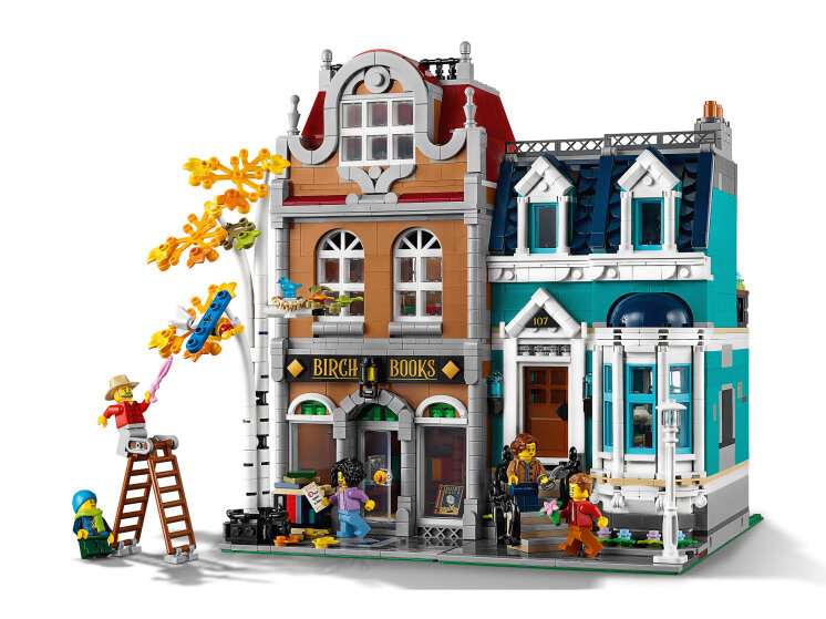Почувствуй очарование европейского книжного магазина с этим набором из серии LEGO Creator Expert Modular Buildings. Получи удовольствие от захватывающей сборки этой модели, полной удивительных функций и забавных деталей: здесь ты увидишь книжные полки и кассу на первом этаже, укромный уголок для чтения и балкон на втором, а также спальню на верхнем этаже. Модель была бы не полной без расположенного по соседству дома, где также можно увидеть множество деталей и аксессуаров. Набор продвинутого уровня «Книжный магазин» LEGO Creator Expert Modular Buildings наполнен забавными деталями и удивительными функциями, которые взрослые и дети будут с удовольствием собирать и с гордостью демонстрировать друзьям. В этой трёхэтажной модели LEGO вы увидите невероятное количество деталей: витрину, книжные полки, уголок для чтения, а также жилые квартиры в городском доме. А пять минифигурок помогут вам вдохнуть жизнь в эту коллекционную модель. Набор «Книжный магазин» является частью серии Modular Buildings, а также постоянно растущей коллекции моделей зданий, объединив которые, можно создать потрясающую улицу, которую все конструкторы LEGO и коллекционеры будут рады заполучить и с гордостью демонстрировать друзьям.