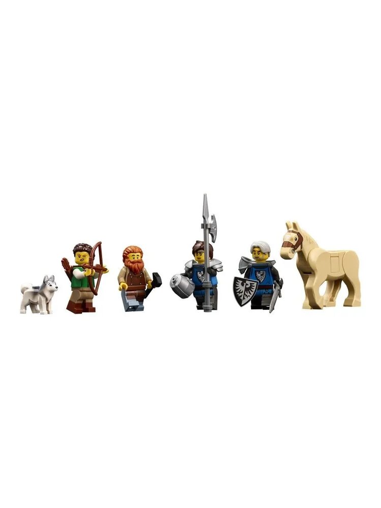 | Комплектация | 2164 деталей, 4 мини-фигурки (кузнец, лучник.2 рыцаря Черного Сокола с 4 мечами, 3 щитами и алебардой), фигурка собаки, дречесной лягушки, инструкция, упаковка |
