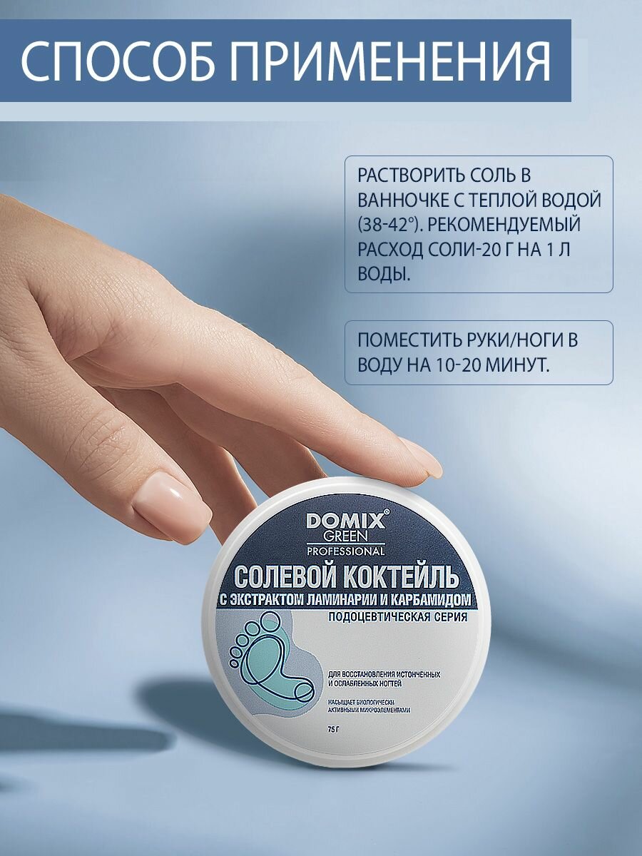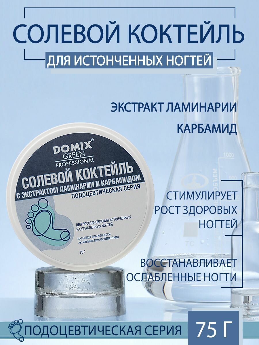 DOMIX Коктейль солевой с экстрактом ламинарии и карбамидом для восстановления истонченных и ослабленных ногтей / Domix Green Professional 75 мл (406825)