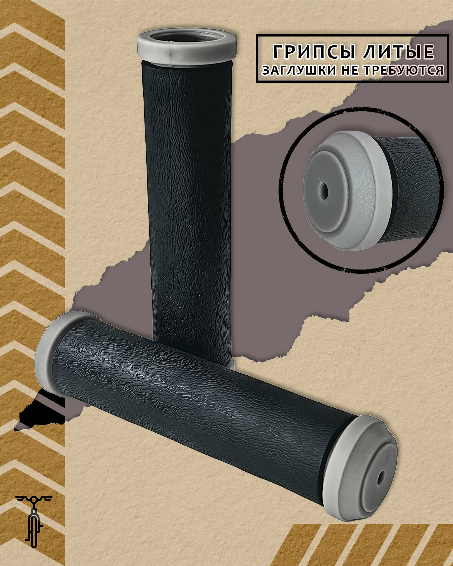 Велосипедные ручки руля (грипсы) имеют нескользящую поверхность зажимы-фиксаторы защищая от проворачивания и, как следствие, снимая дополнительную нагрузку на кисти и запястья рук. Сами ручки имеют анатомичную форму, что помогает несколько расслабить кисти рук во время езды, что также положительно сказывается на усталости рук.