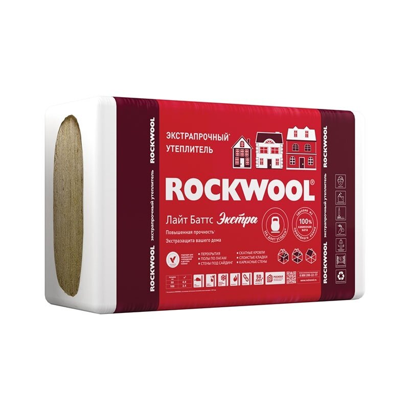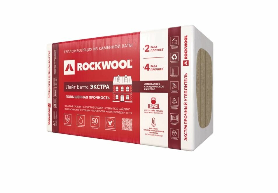 **Утеплитель Rockwool Лайт баттс Экстра** используется для отделки кровли, каркасов, перегородок и перекрытий административных и жилых зданий. Обеспечивает защиту от воздействия осадков и ветра, пожаробезопасность и пароизоляцию. Применение изделия позволяет оптимизировать затраты на отопление. Обладает влагостойкостью.