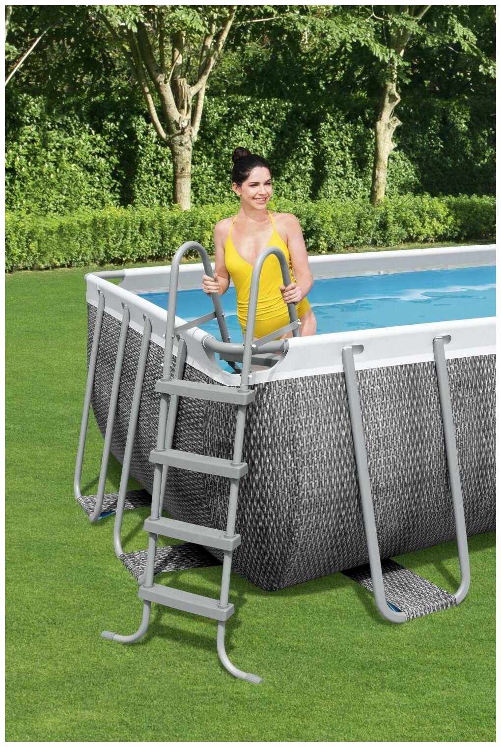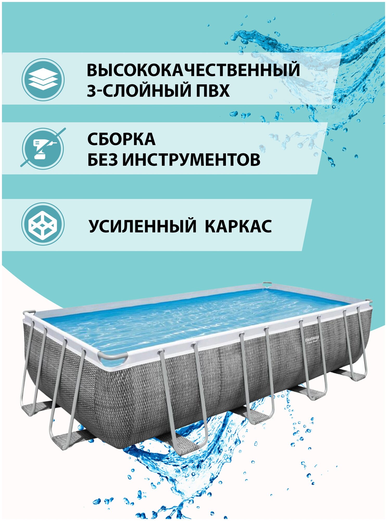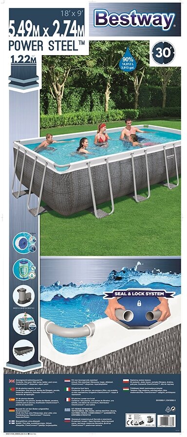 56998. Каркасный прямоугольный бассейн Bestway Rectangular Ultra Frame 549х274х122 см.В комплект бассейна входит:ПВХ чаша 549*274*122 см.Металлический каркас.Фильтр-насос картриджный 5678 л/ч!Лестница высотой 122 см.Тент/крышка/полог.Руководство по эксплуатации.Видеодиск с инструкциями по установке. Прочный прямоугольный каркасный бассейн Bestway Rectangular Ultra Frame 549x274x122 см подойдет для тех кому дорого свободное пространство своего загородного дома или дачи. Он легко и непринужденно впишется в любой ландшафтный ансамбль и будет радовать своих хозяев своим эргономичным видом и лаконичностью. Бассейн каркасный Bestway Rectangular Ultra Frame 549x274x122 см имеет прочную ПВХ чашу с применением технологии "тройного материала", которая придает каркасному бассейну особую тройную прочность и надежность. Стальной каркас изготовлен по инновационным технологиям машиностроения и будет долгое время обеспечивать необходимые прочностные характеристики заданные производителем, а современное покрытие металлического каркаса специальным полимером защитит бассейн от коррозии. Бассейн каркасный Bestway Rectangular Ultra Frame 549х274х122 собирается в считанные минуты и для этого Вам даже не потребуется особых инструментов, кроме отвертки для сборки лестницы каркасного бассейна. Монтаж бассейна необходимо осуществлять последовательно:извлеките всю комплектацию бассейнаразложите на предварительно приготовленной платформе или на участке земли ПВХ чашуразложите трубки каркаса бассейна по размерамразложите угольникивставьте соответствующие длине сегментов верхнего периметра чаши трубки совмещая их с угольником по диаметрам отверстий, последовательно у Вас соберется верхний периметр каркасакогда верхний периметр каркаса будет собран, установите стойки бассейна в соответствующие угольникистойки-подкосы необходимо установить в специальные полипропиленовые ленты расположенные снизу чашиКогда бассейн каркасный Bestway Rectangular Ultra Frame 549х274х122 см собран еще раз проверьте правильность сборки и соединение всех элементов. Затем можно приступать к наполнению бассейна водой. Для этого Вам понадобится садовый шланг и наличие колонки или водопровода. Для слива воды используйте специальный сливной клапан находящийся снизу чаши бассейна. Присоедините к штуцеру (идет в комплекте) шланг и вкрутите его в сливной клапан. Шланг Вы можете вынести в любое подходящее место для слива воды из бассейна.Желаем Вам приятного и солнечного летнего времени!